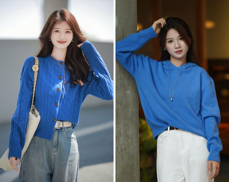【超模君精选】ORIGNAL&CO克莱因蓝开衫、连帽针织衫,两款可选,显白、高级、有气质【3-5天发货,周末顺延】
