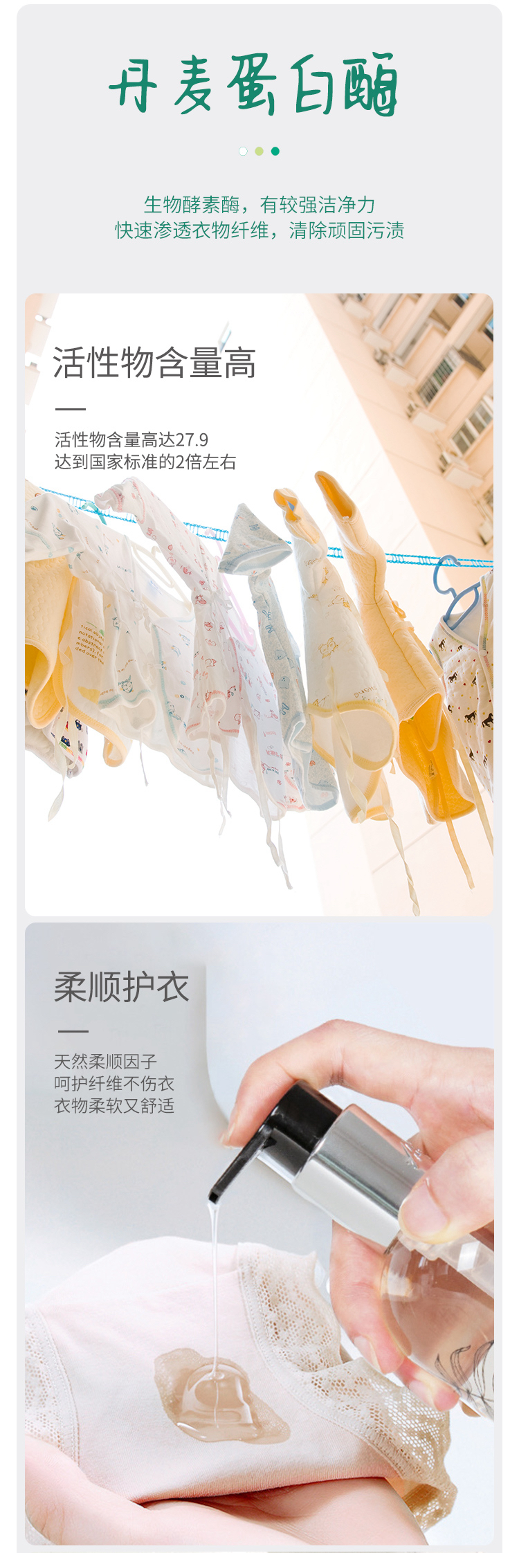 【超浓缩内衣裤洗衣液】活性物>25% 丹麦进口蛋白酶 马来西亚进口椰子油抑菌99%
