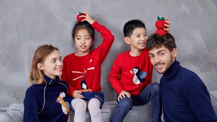 来自 SAND RIVER 可持续发展计划的羊绒手勾苹果。100%山羊绒,带来软糯满满的童趣体验。