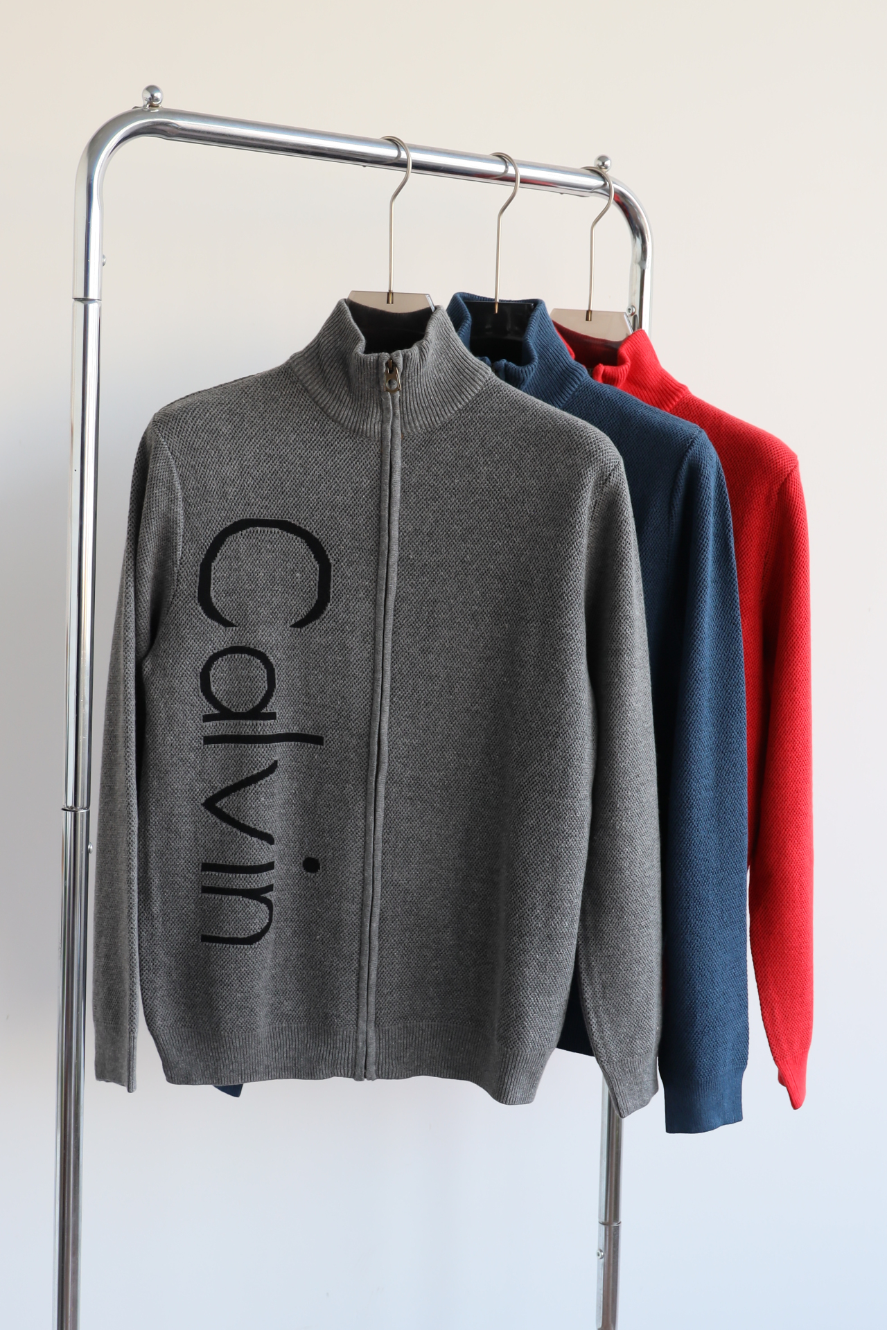 西K 出口韩单 提花字母 拉链高领毛衣外套