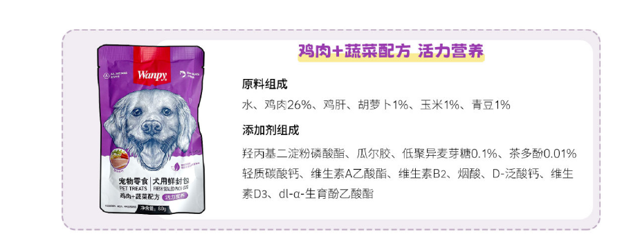 顽皮 鲜封包【犬用鸡肉+蔬菜80g】猫条湿粮营养增肥猫咪狗狗零食解馋拌粮1袋