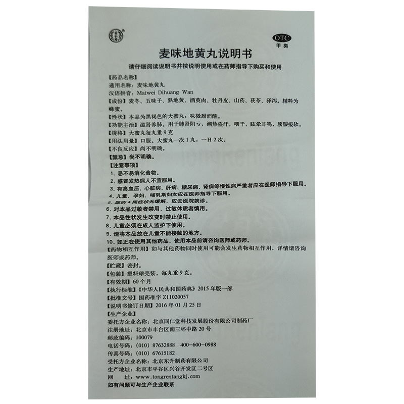 同仁堂 麦味地黄丸 9g*10丸滋阴补肾 养肺 眩晕耳鸣 腰膝腿软