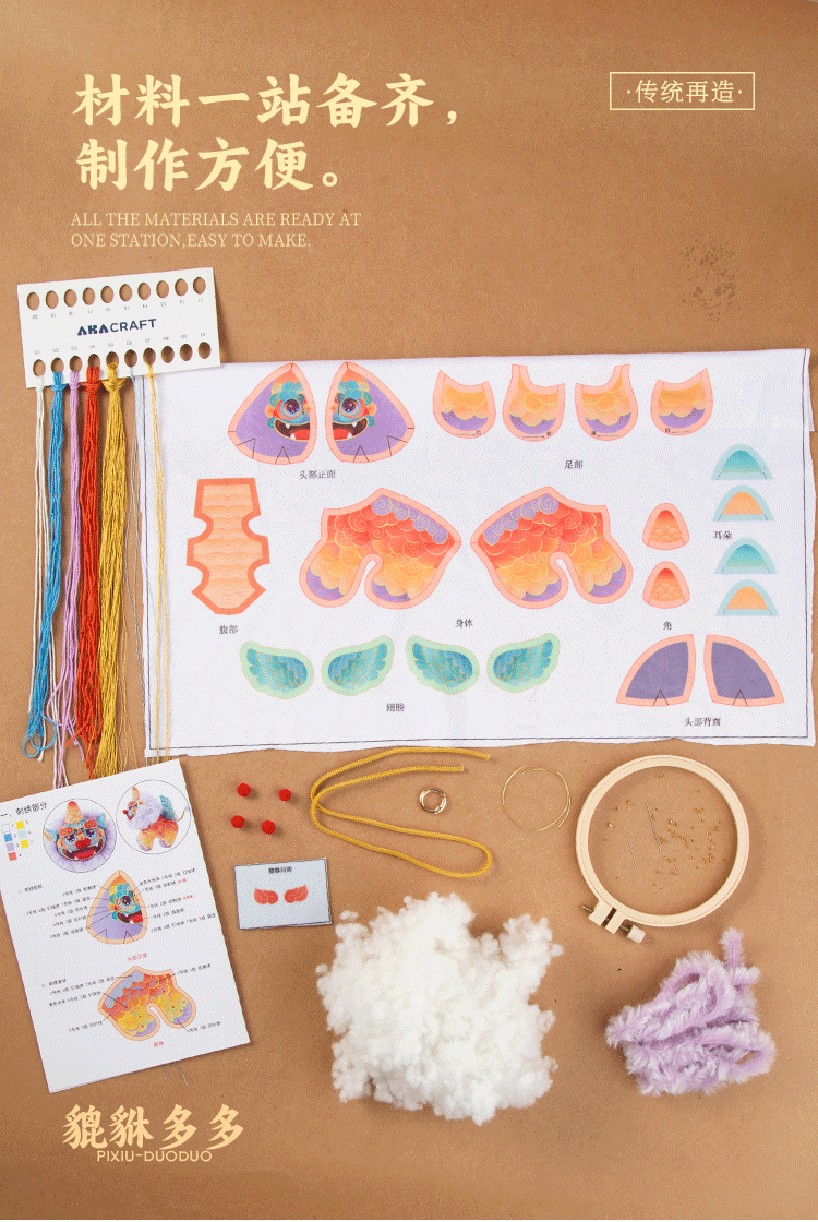 【端午粽子】萌狮、瑞虎和祥龙粽子香包DIY材料包