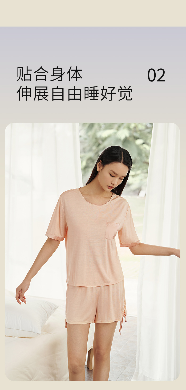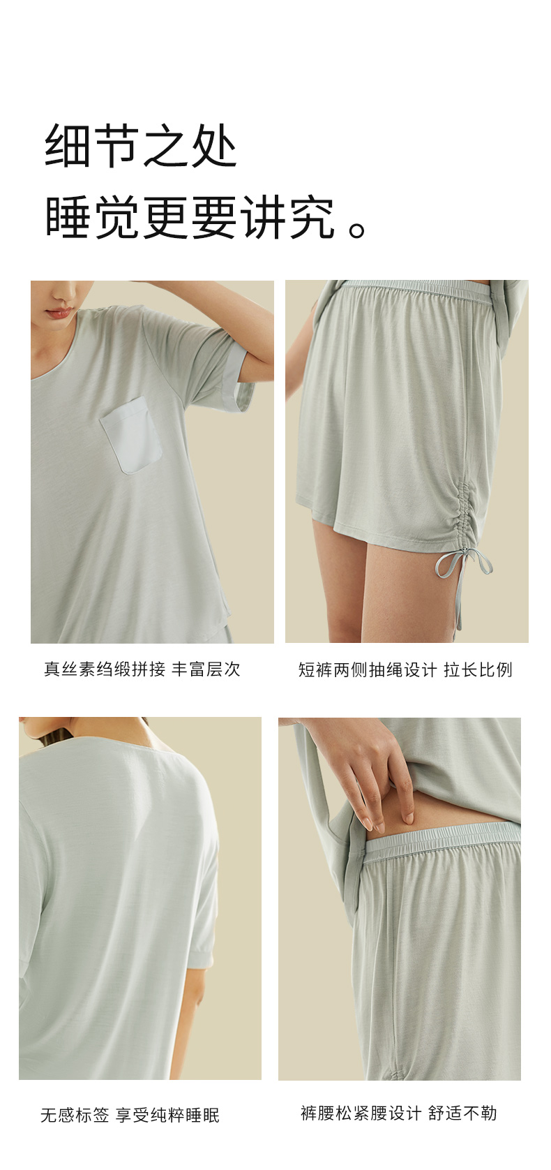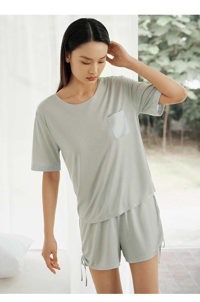 【深睡眠蚕丝睡衣】100%桑蚕丝女真丝针织家居服女短袖衣裤套金三塔 YZFEA402