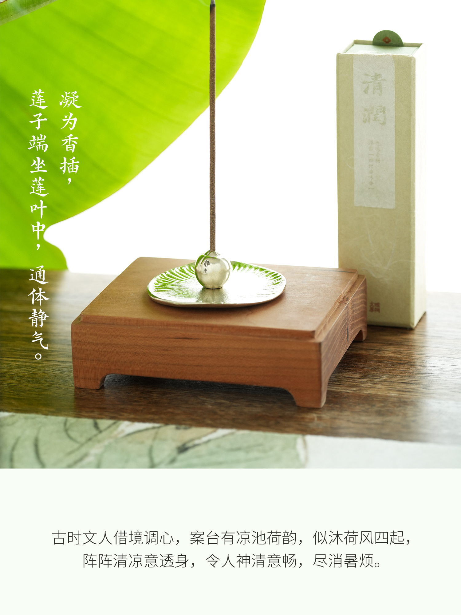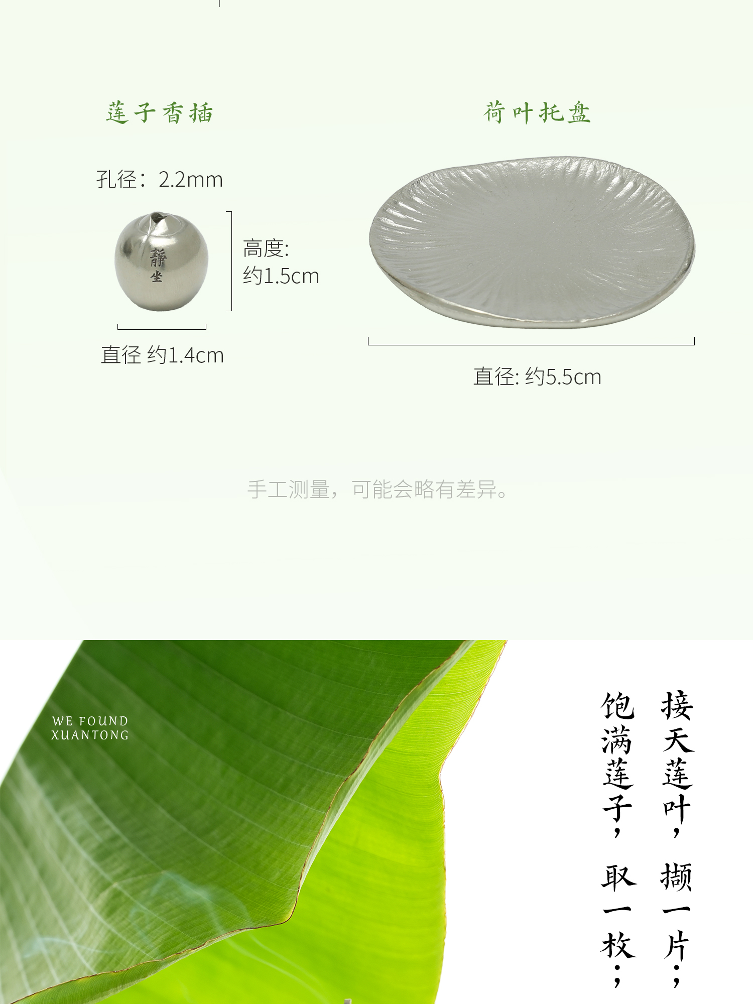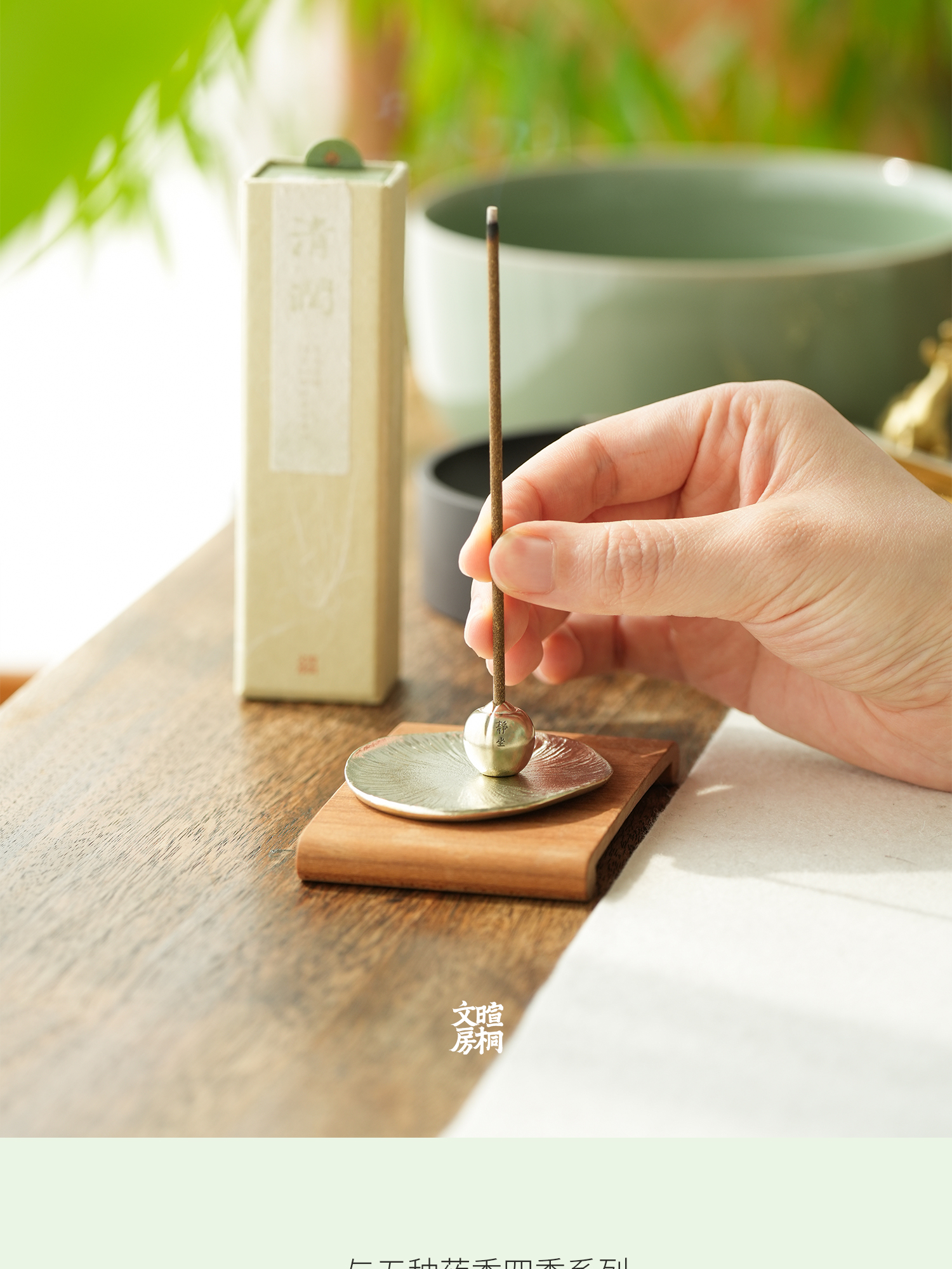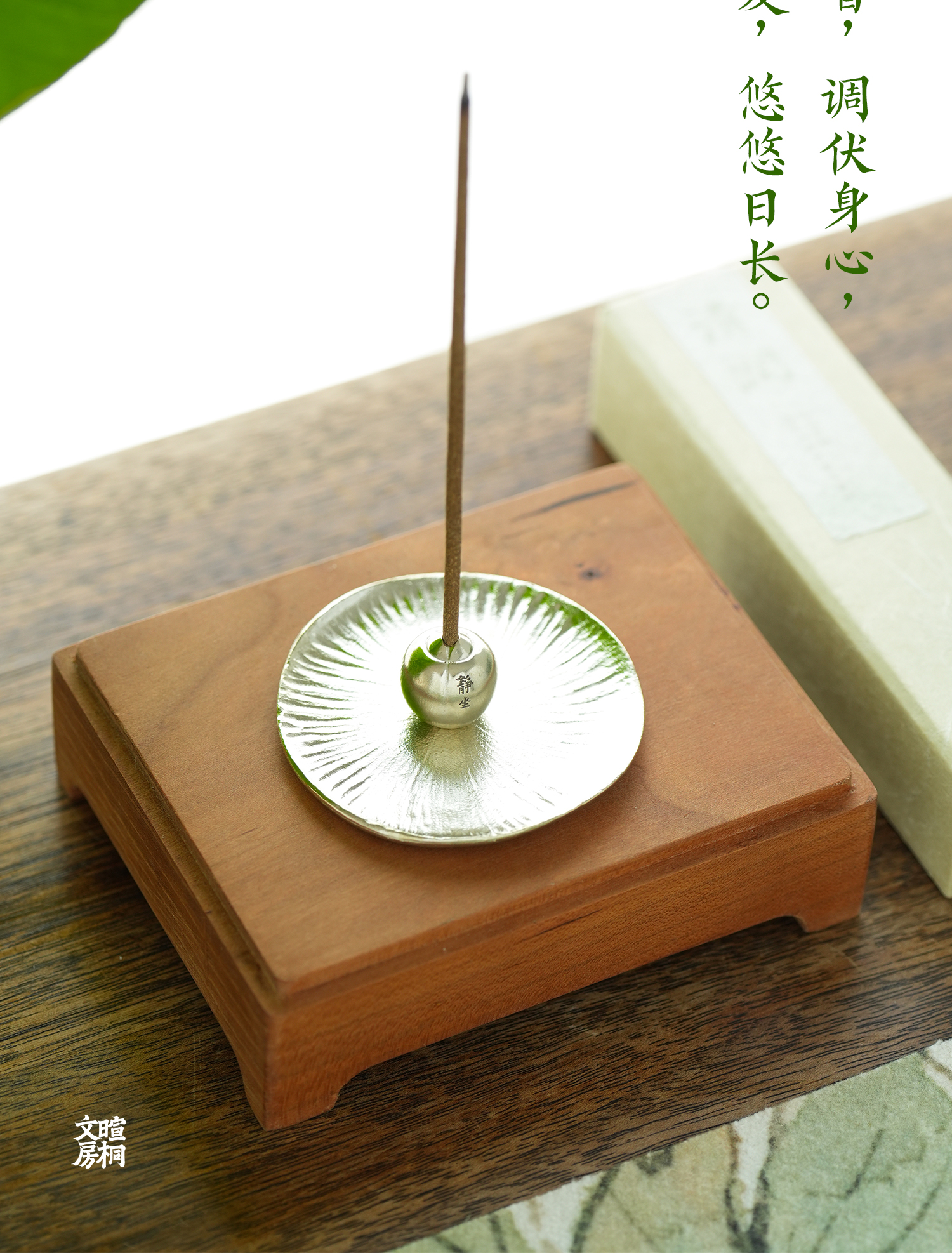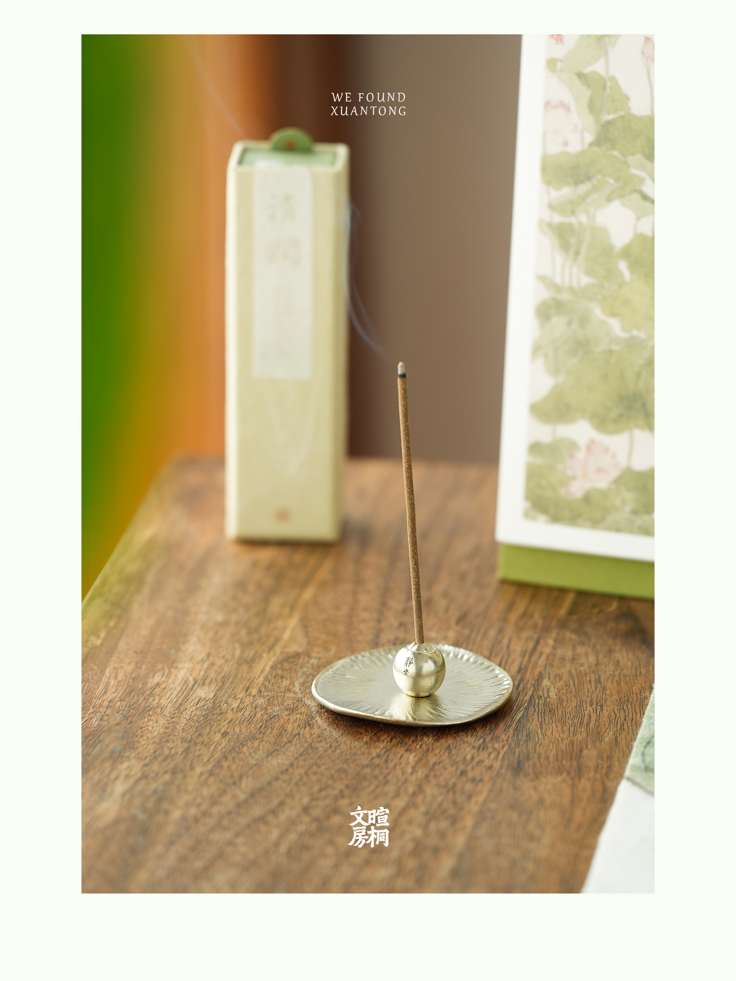 暄桐文房 静坐香插 莲子 荷叶 白铜