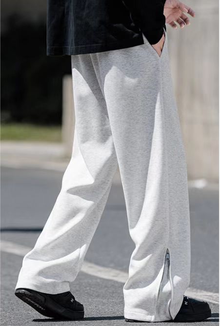 拉链开叉卫裤 无敌百搭~谁穿谁好看的休闲裤 宽松版型不挑人 优选高品质面料 上身有型 柔软舒适质感十足 简约而不简单 小logo印花jing致包边 打造超强层次感 立体剪裁 修饰腿型 腰部抽绳可调节腰围 走线工整 男女都可轻松驾驭!