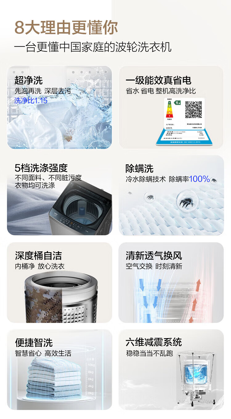大容量家用租房出租全自动8/10/12KG变频波轮洗衣机