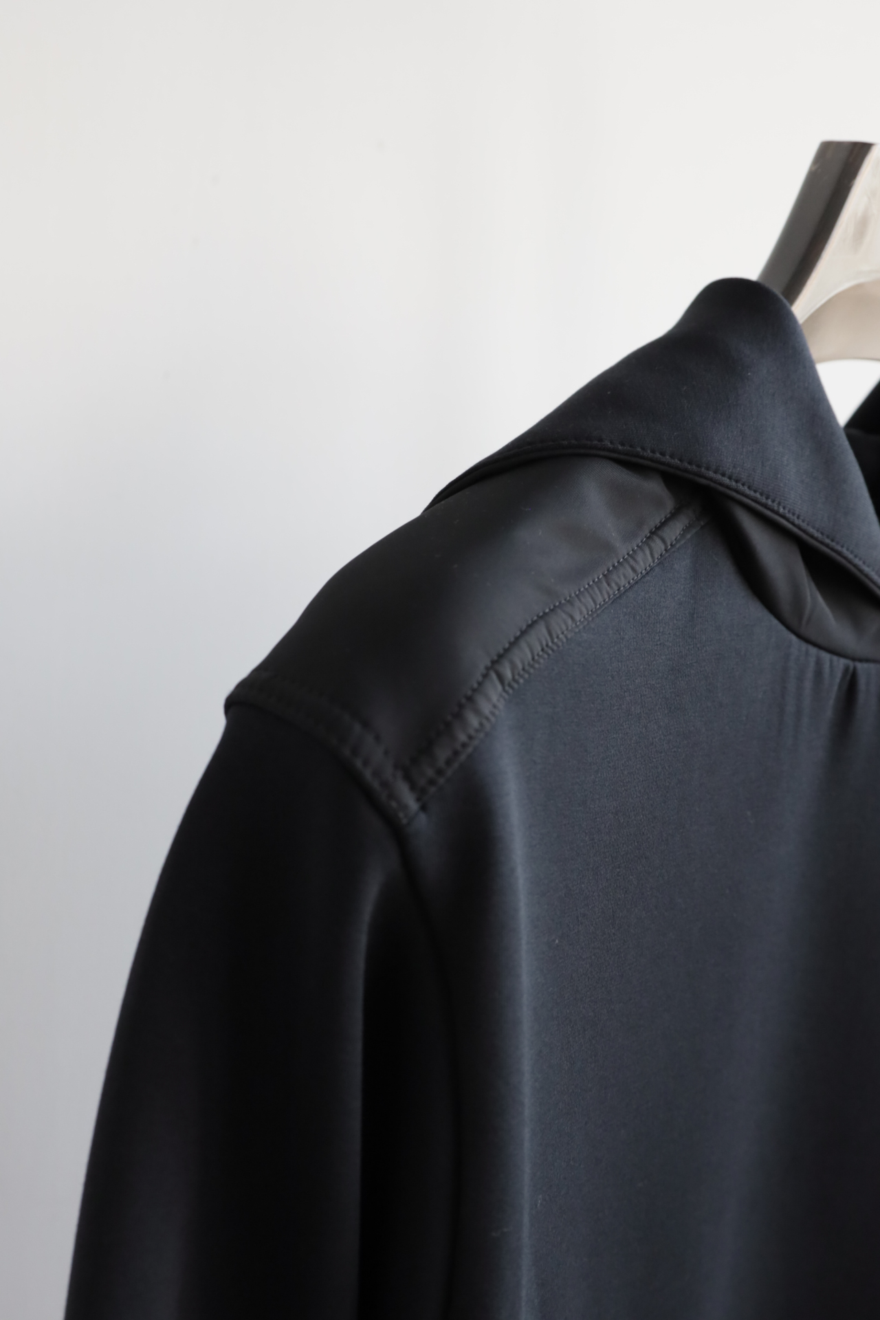 领口微贴合颈部,整体上身感更具时尚感