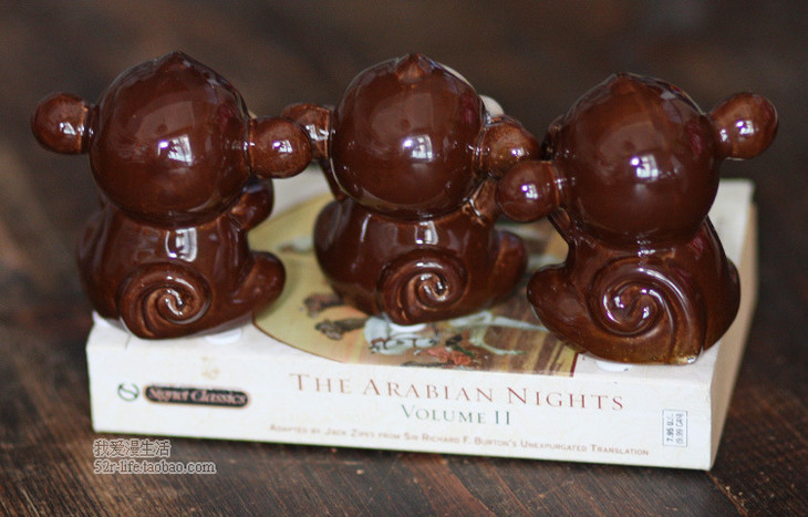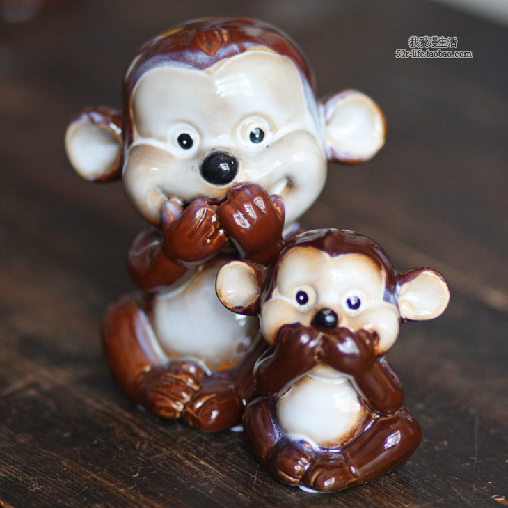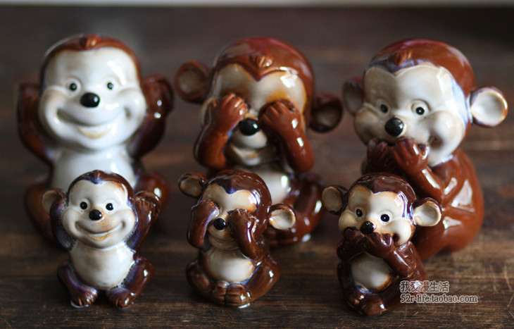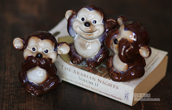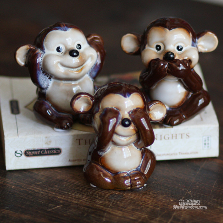 【家居摆件】。zakka杂货陶瓷工艺家居装饰品创意小摆设三不猴彩色陶瓷摆件