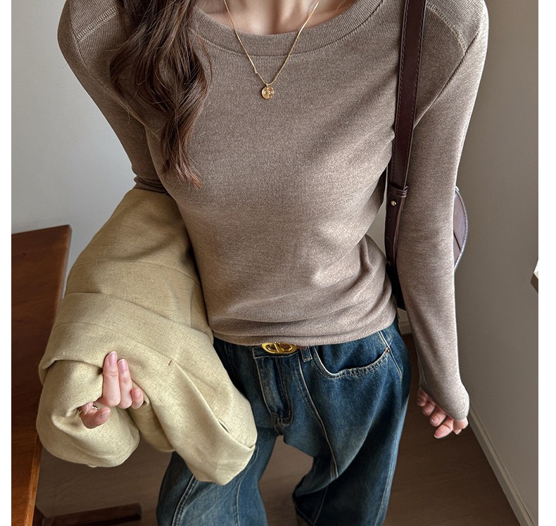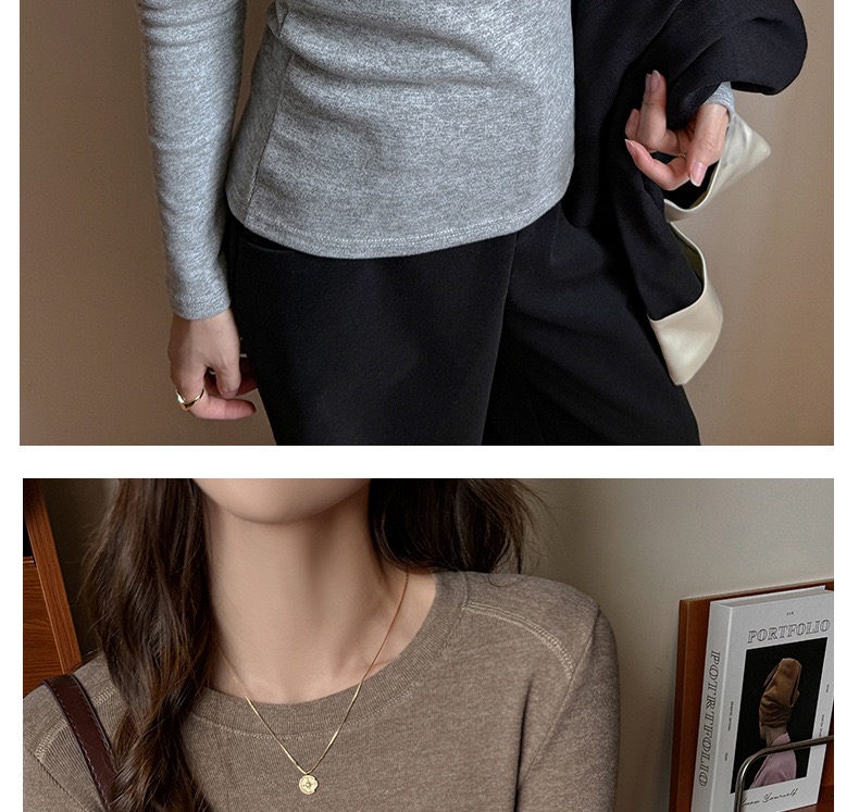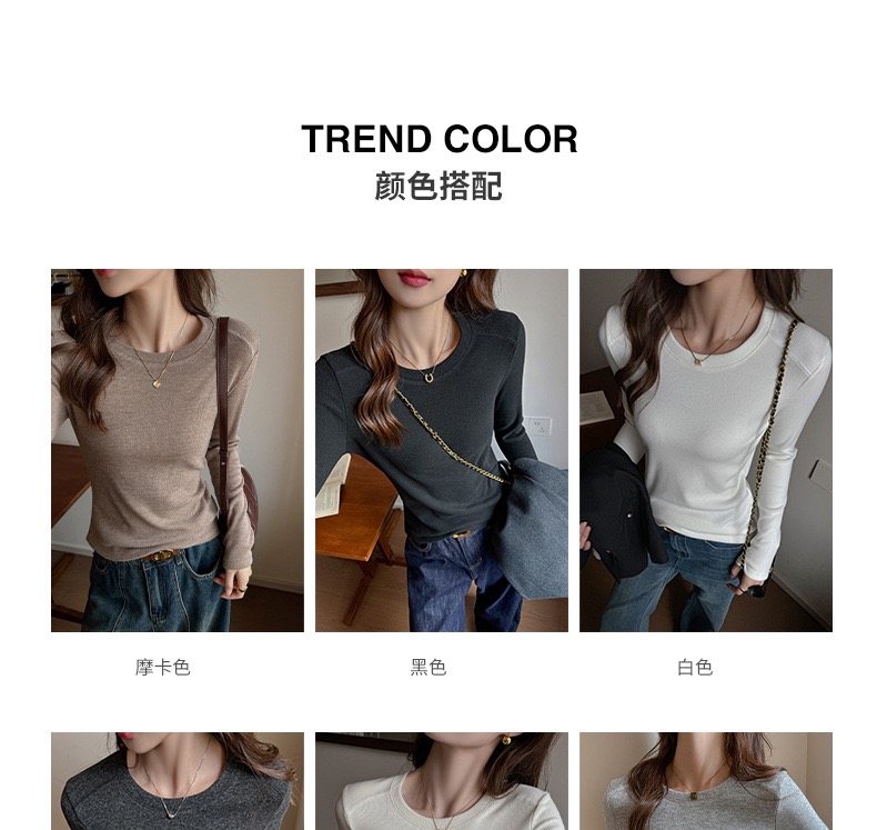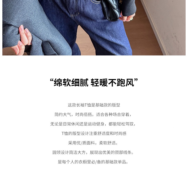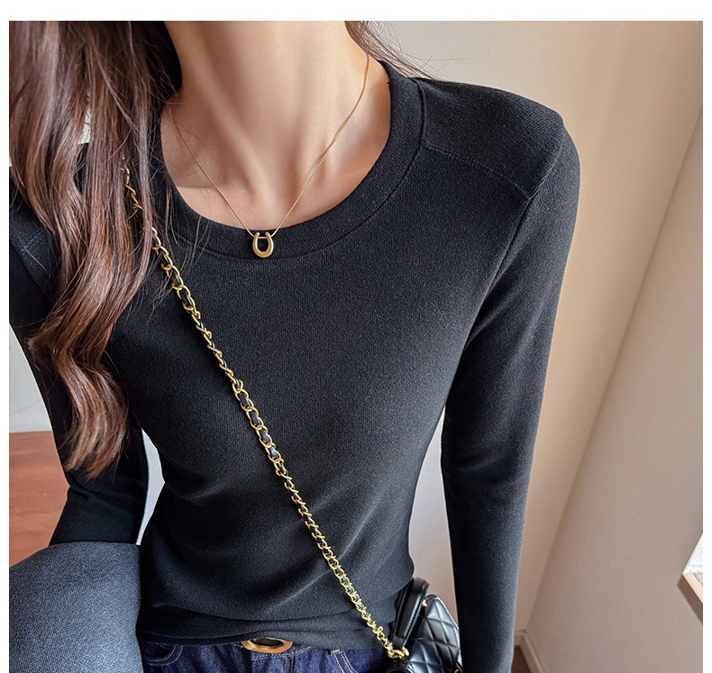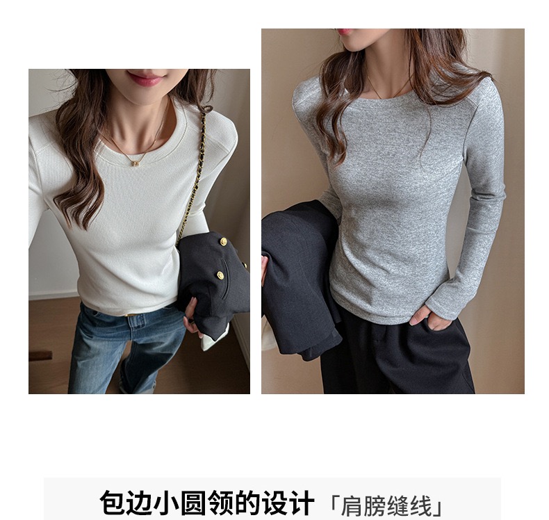 高级感百搭圆领加厚磨毛长袖内搭秋冬季修身打底衫女