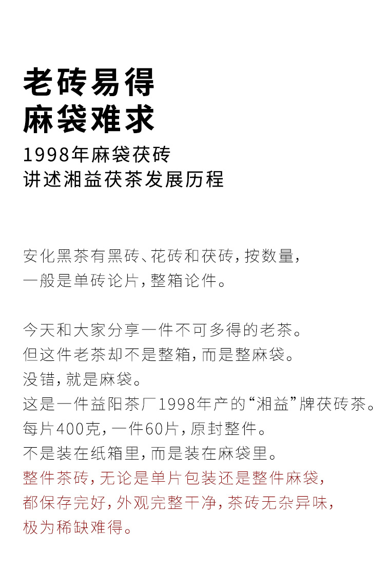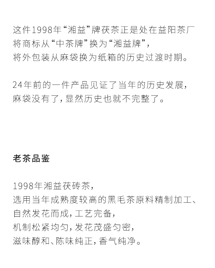 【会员日直播】湘益 黑茶 1998特茯小砖 400g