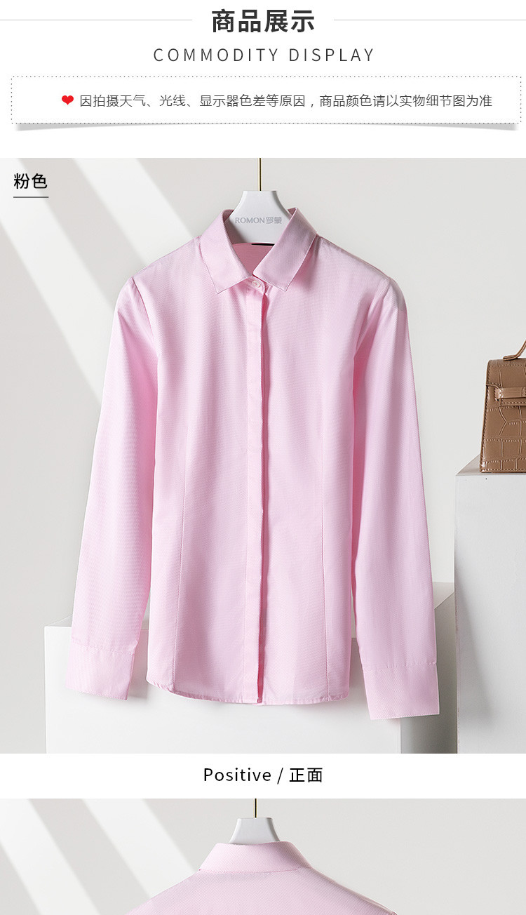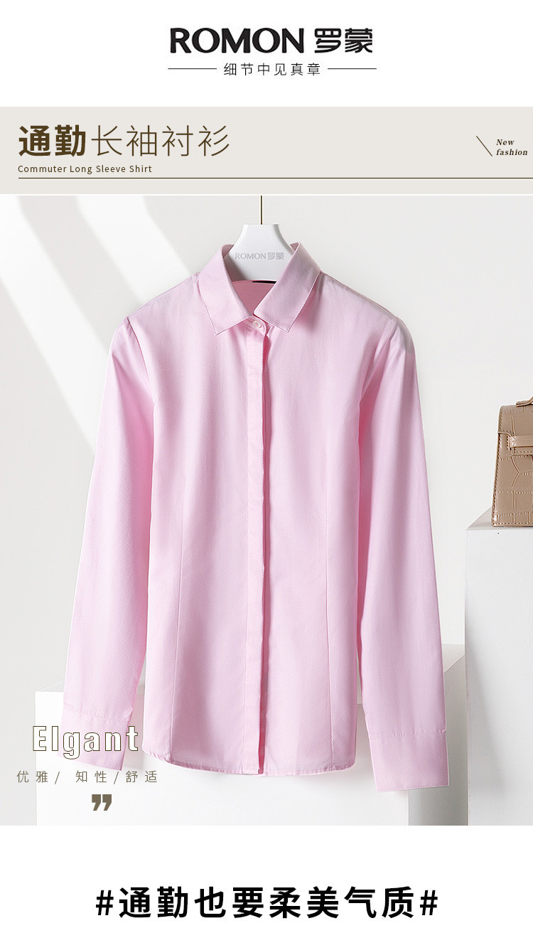【50棉】罗蒙粉色衬衫女长袖秋季正装商务通勤职业装衬衣