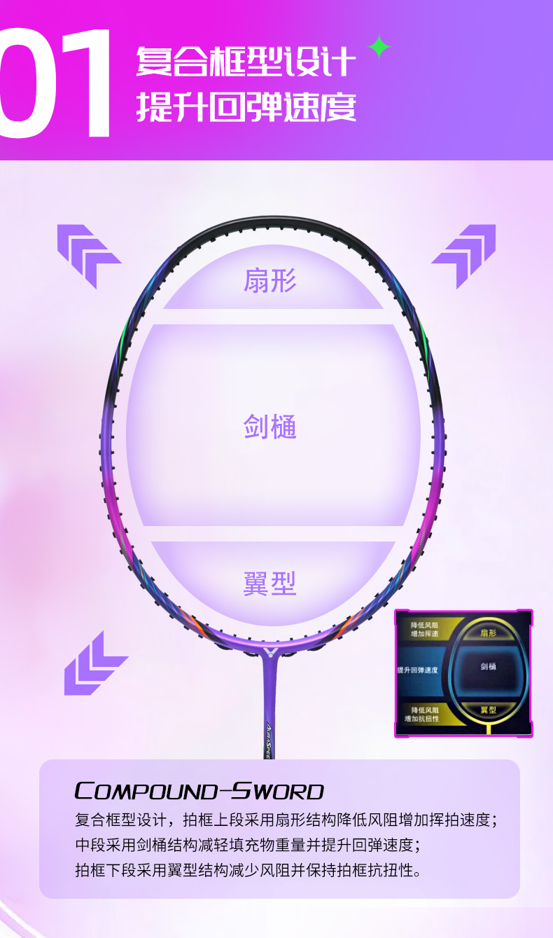 VICTOR威克多羽毛球拍单拍碳纤维进阶级速度型可拉高磅球拍 ARS-33H
