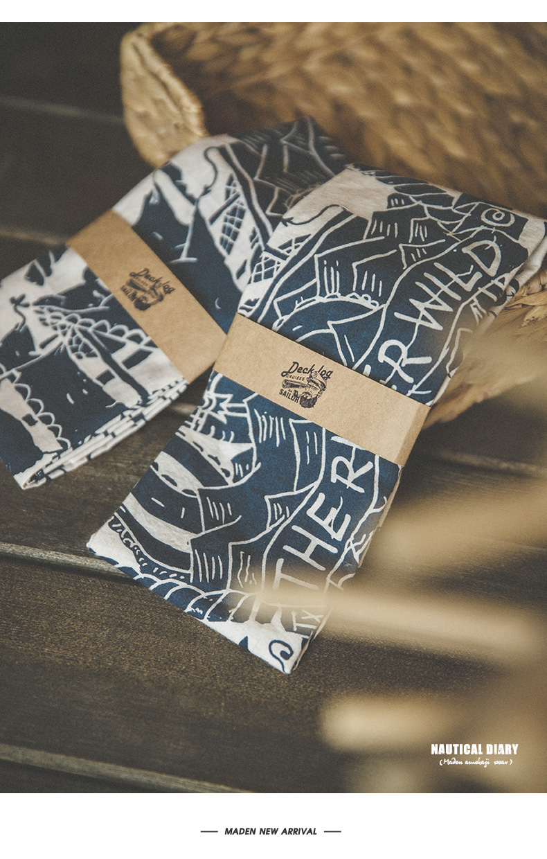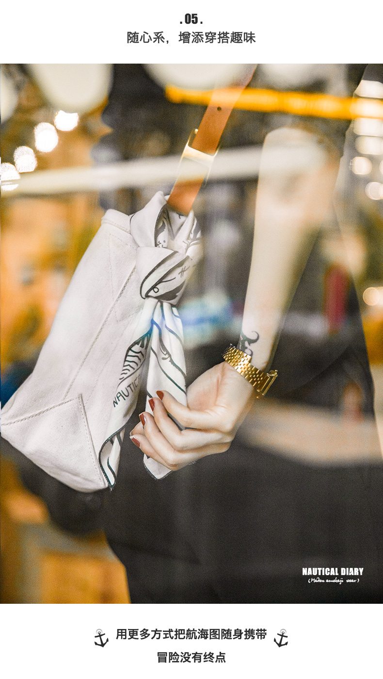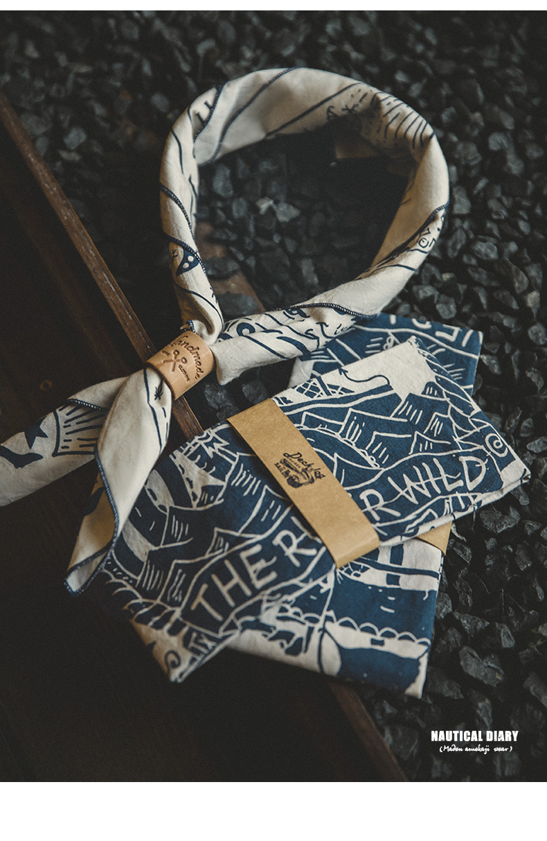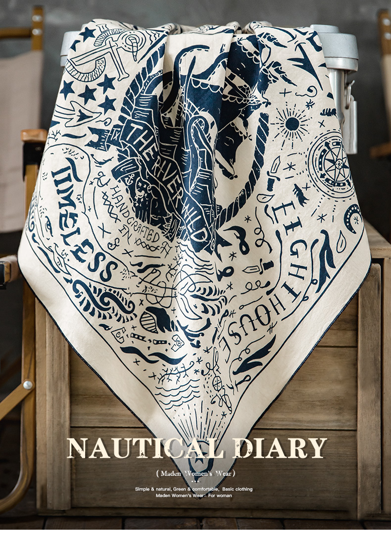 马登女装美式复古航海图方巾扣饰品阿美咔叽头巾领巾手帕文艺发带