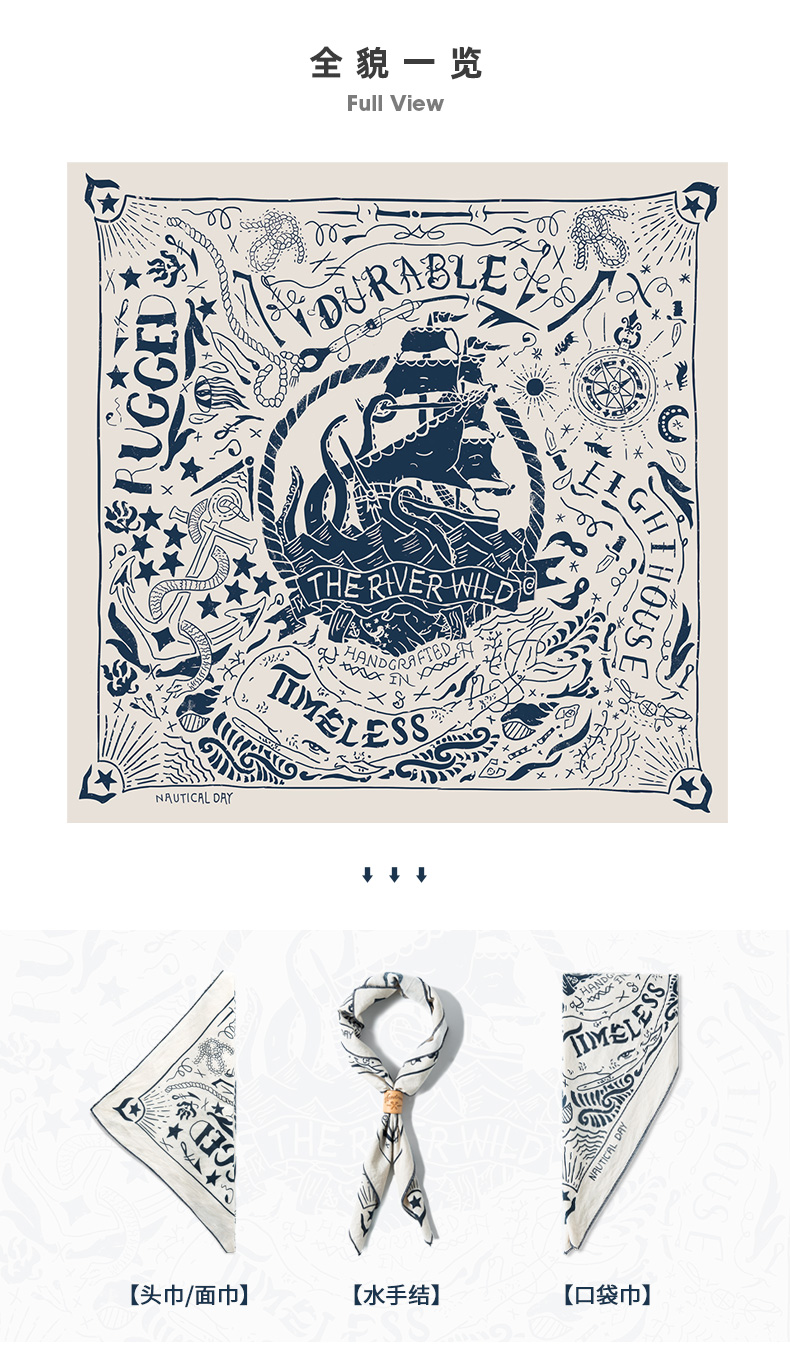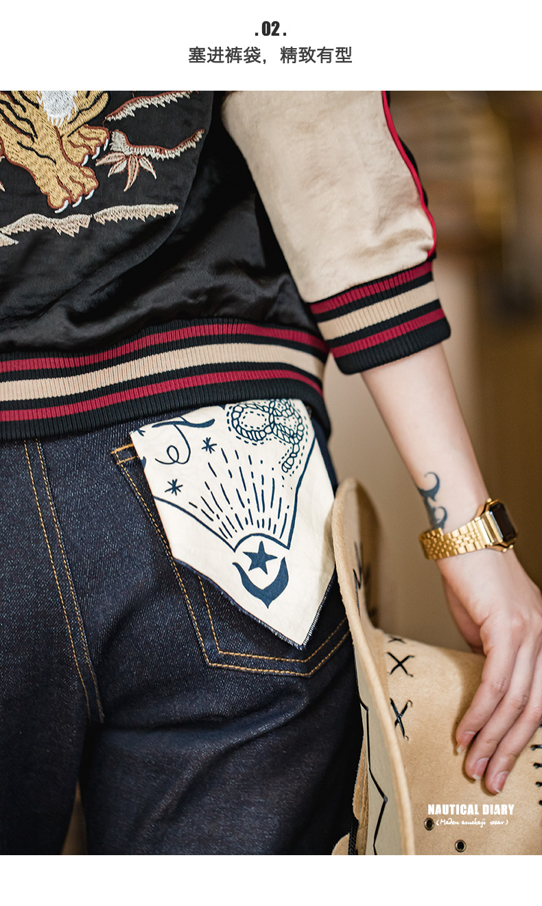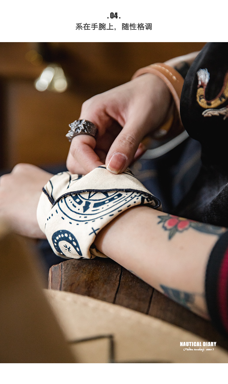 马登女装美式复古航海图方巾扣饰品阿美咔叽头巾领巾手帕文艺发带