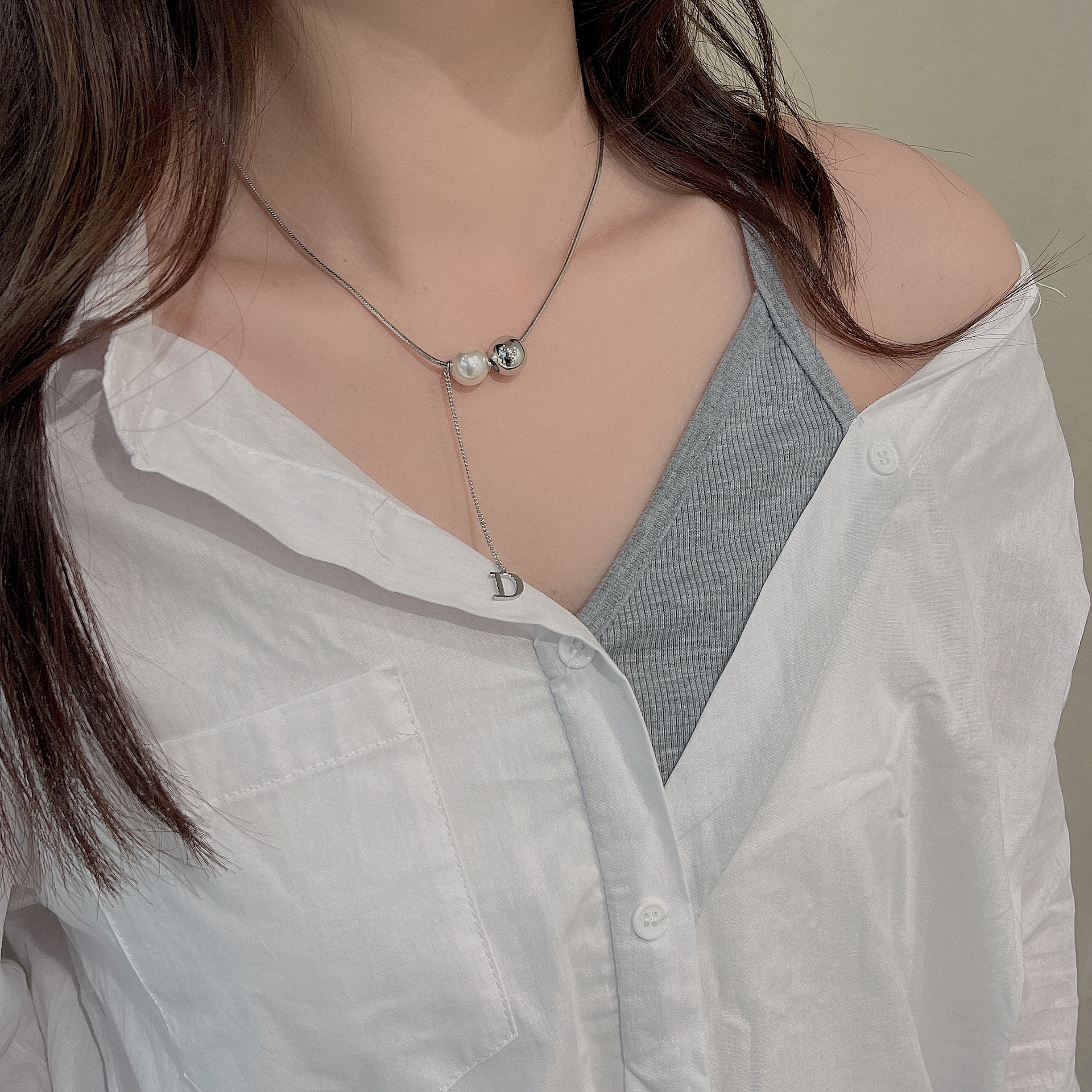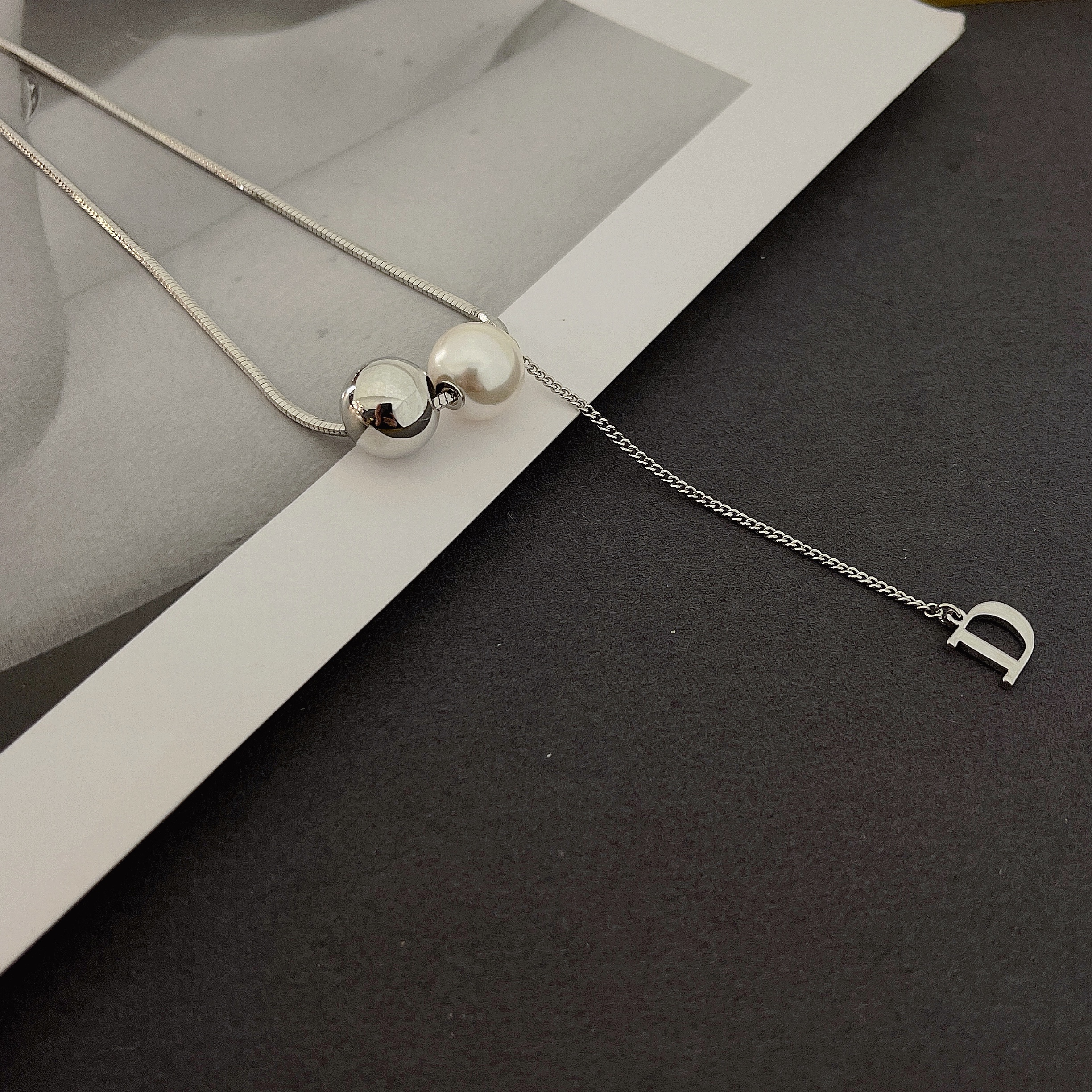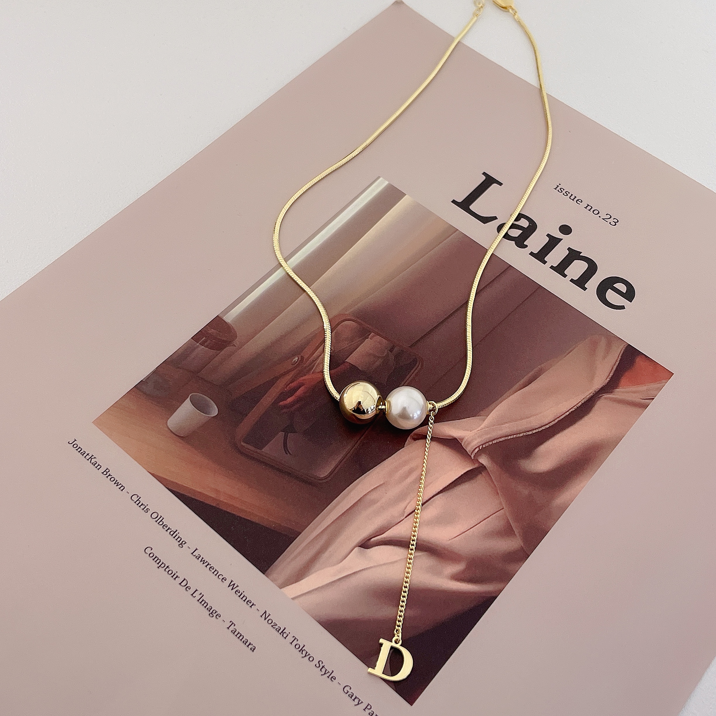 Oflye潮流饰品 轻奢气质珍珠字母D吊坠小众高级感时尚颈链