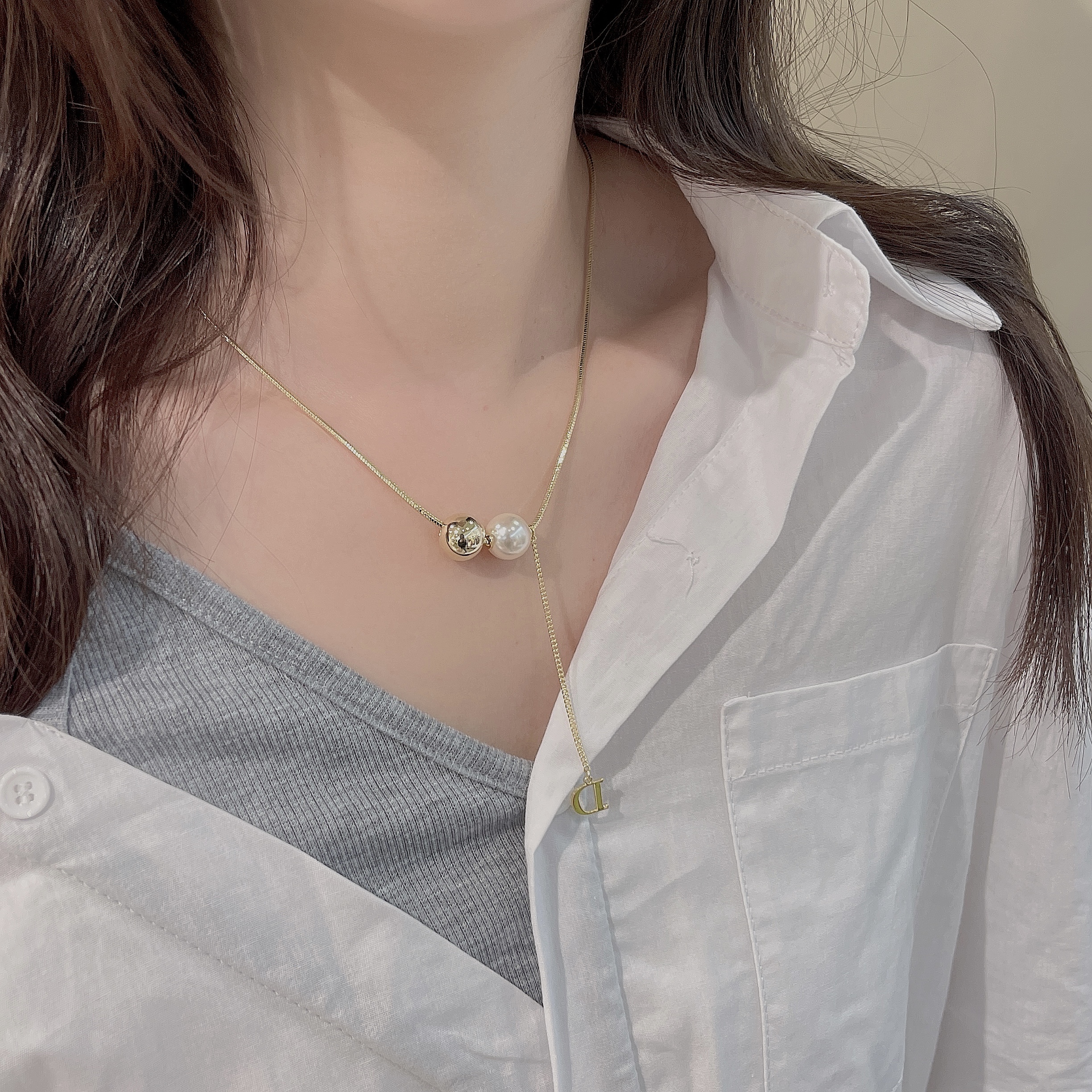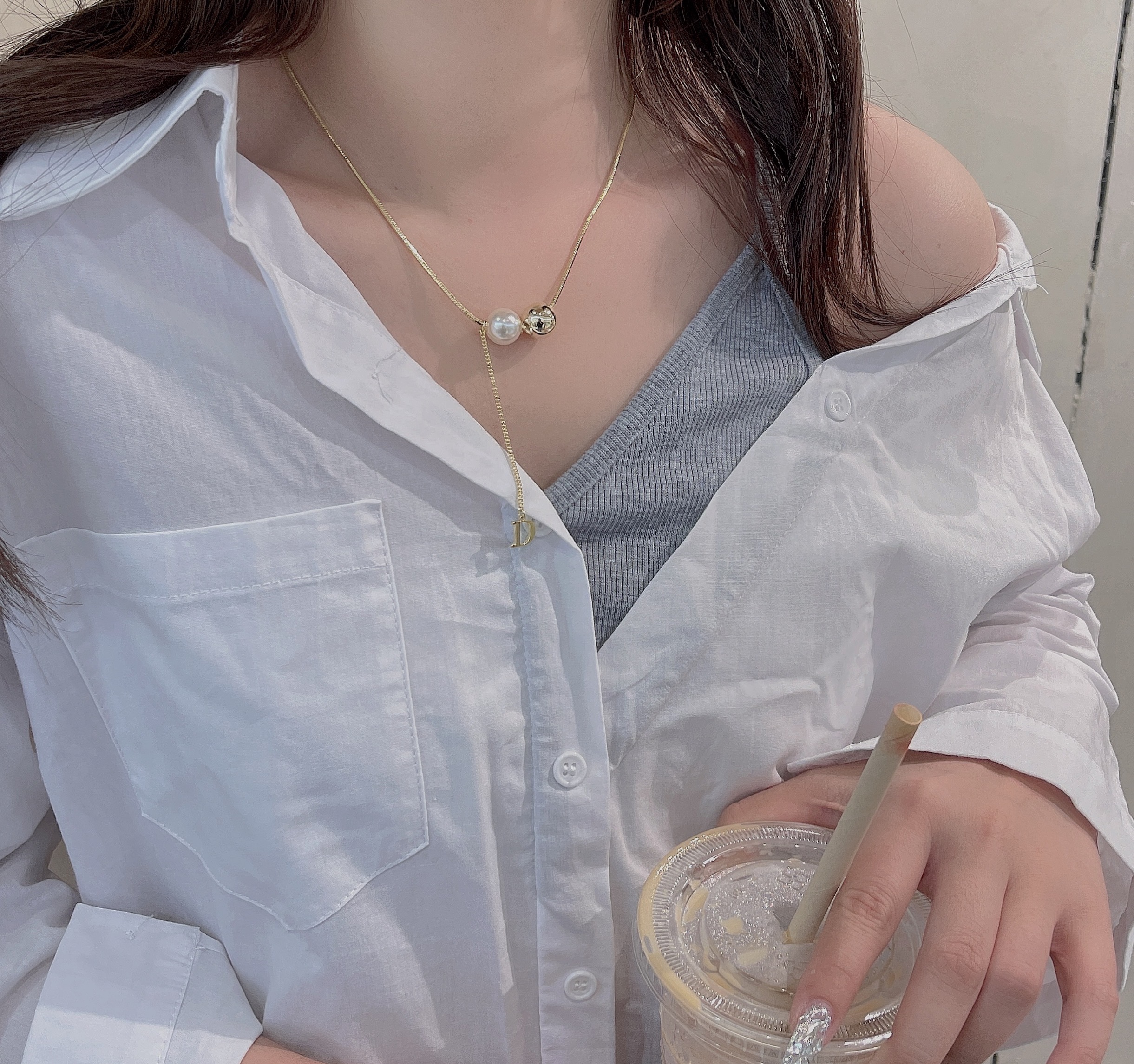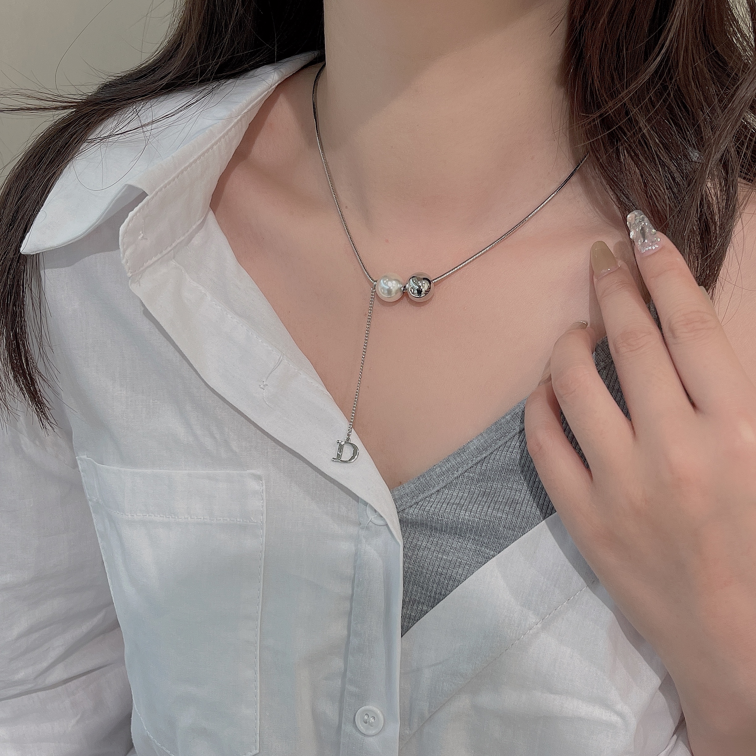 Oflye潮流饰品 轻奢气质珍珠字母D吊坠小众高级感时尚颈链