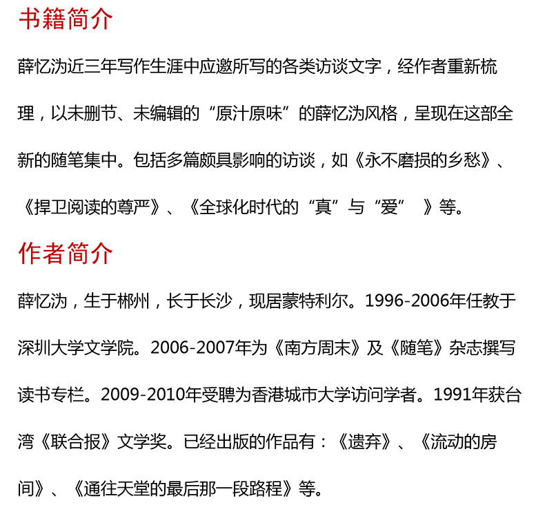 以文学的名义 薛忆沩随笔集 精装