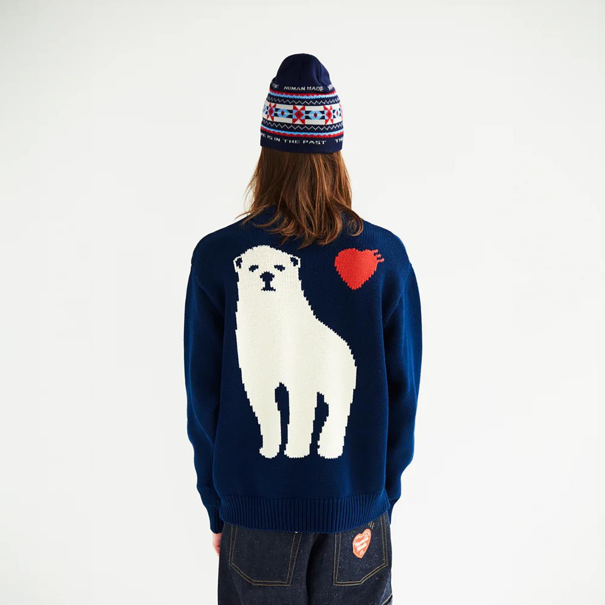 【时髦这件事要上高度】日系潮牌!2026新款HUMAN 秋冬季北极熊爱心毛衣针织衫男女情侣装!