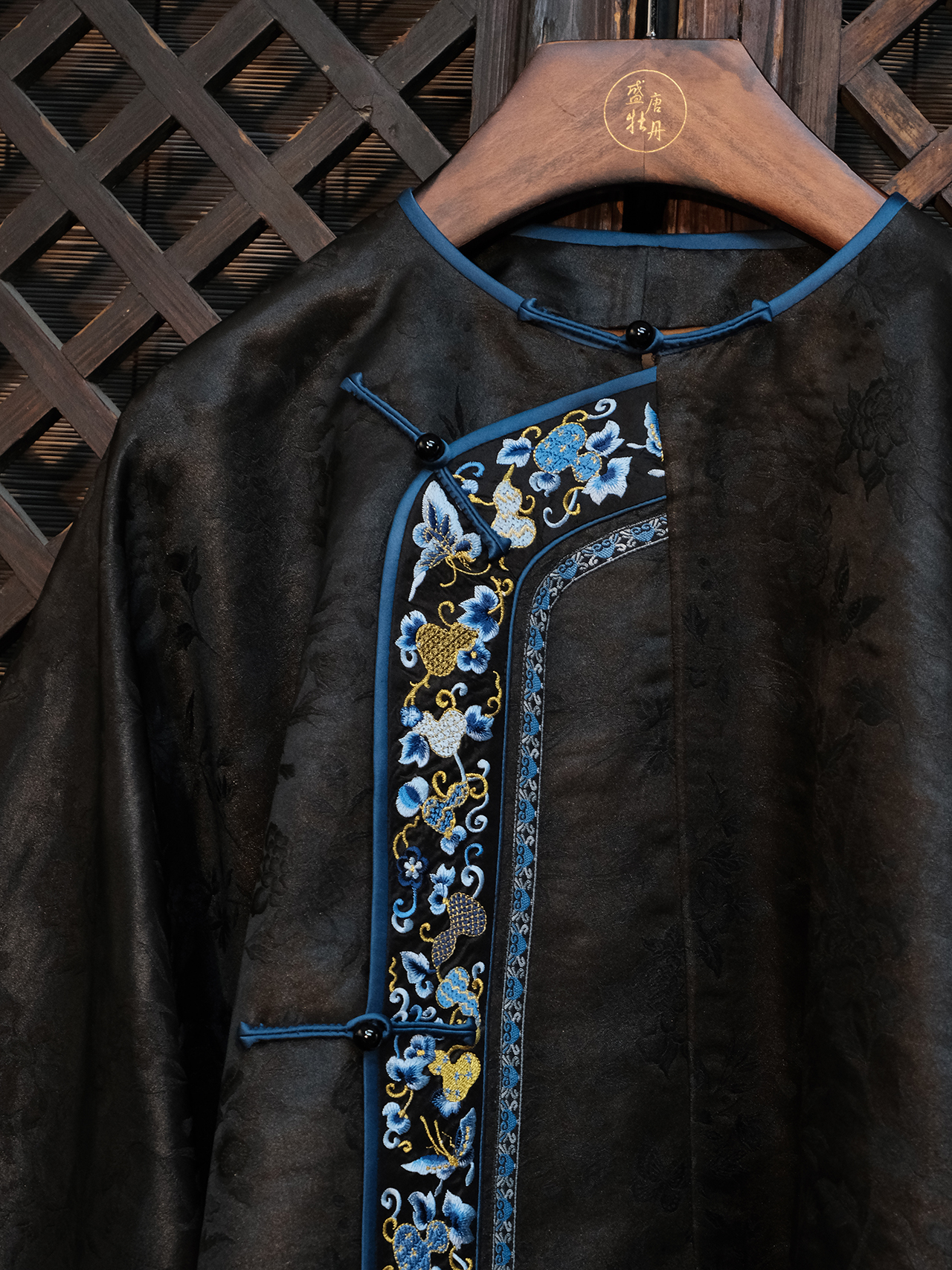 盛唐牡丹 |丝绒小鸟双面穿外套 (不夹棉) (实物的棕色一面为黑扣子.不是棕色扣子)