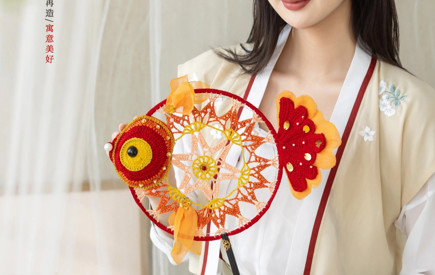 苏苏姐家乐游团扇手工DIY中国风编织钩针毛线团自制材料包