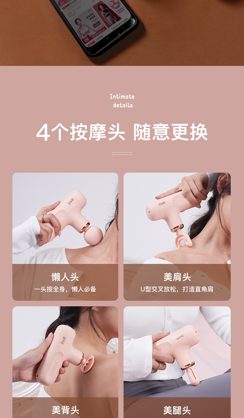 科爱元素玉石筋膜枪丨金丝玉按摩 压力感应自动调整捶打