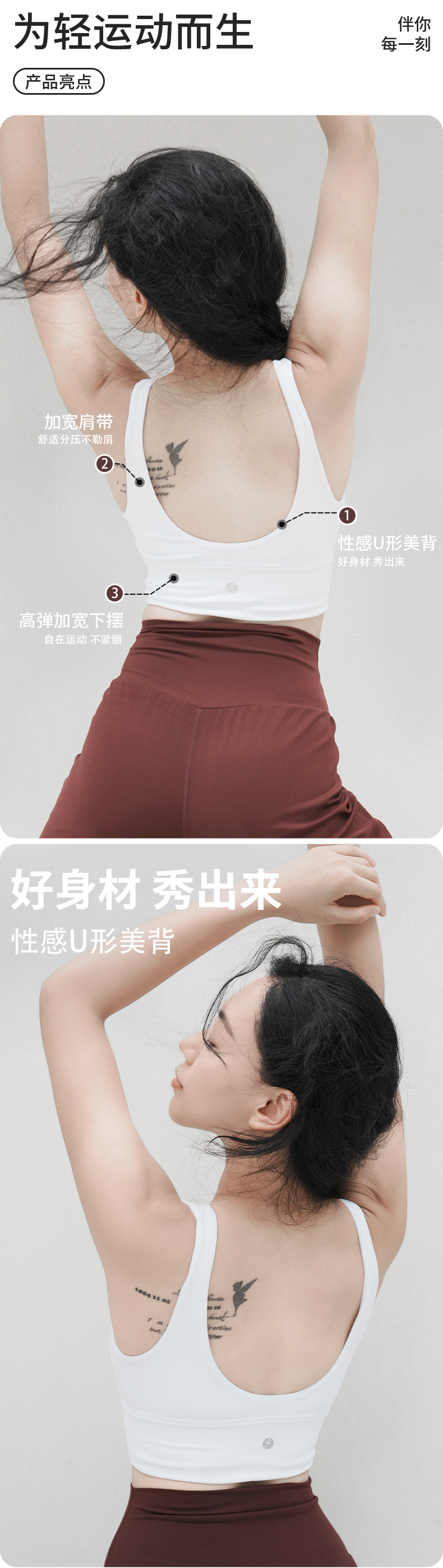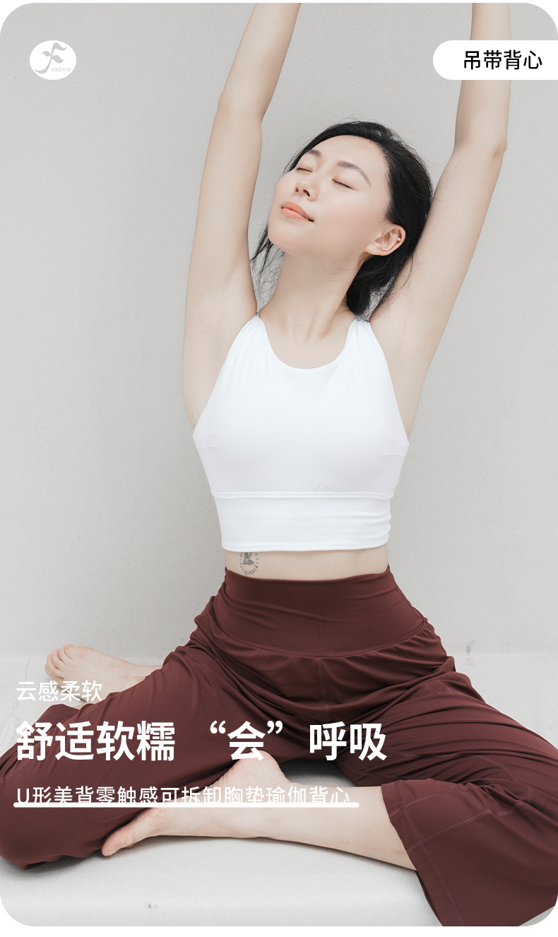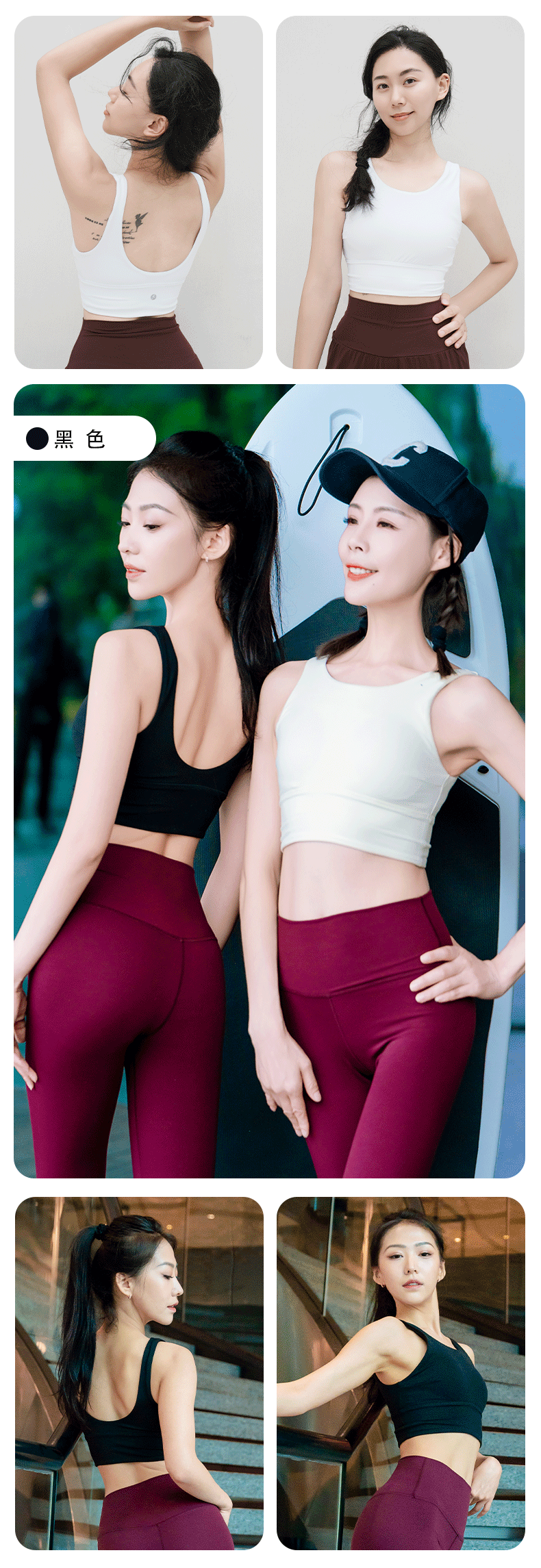 精品推荐经典U形美背软糯舒适零触感面料中底强度可拆卸胸垫瑜伽背心上衣