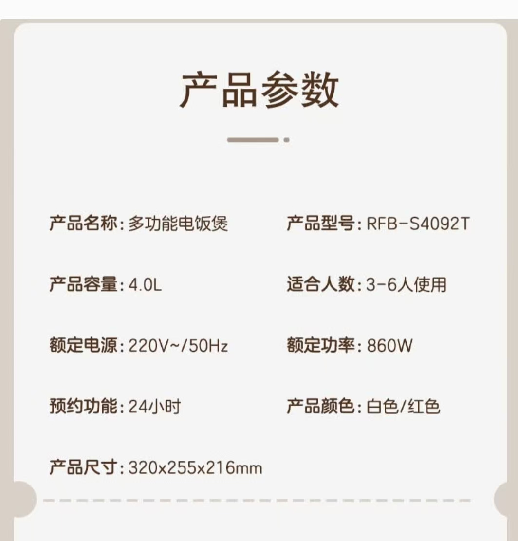 【云粉节】10楼 荣事达电饭煲4升 RFB-S4092T 吊牌价999元 活动价639元