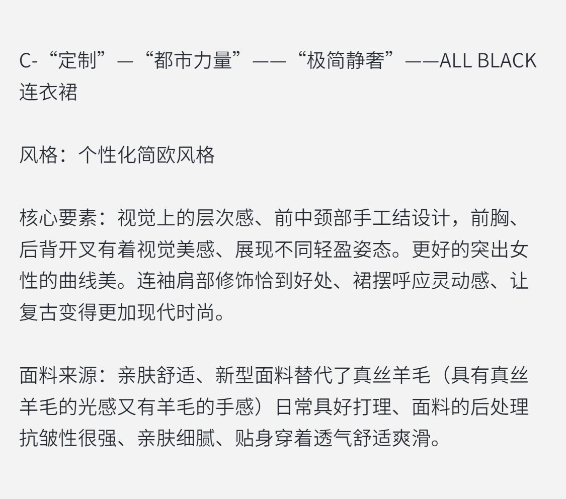 C系列——定制——都市力量——极简静奢——ALL BLACK气质连衣裙 2401006