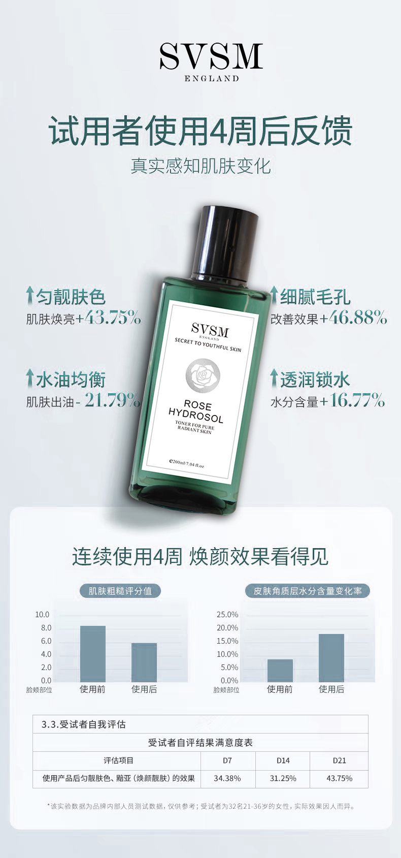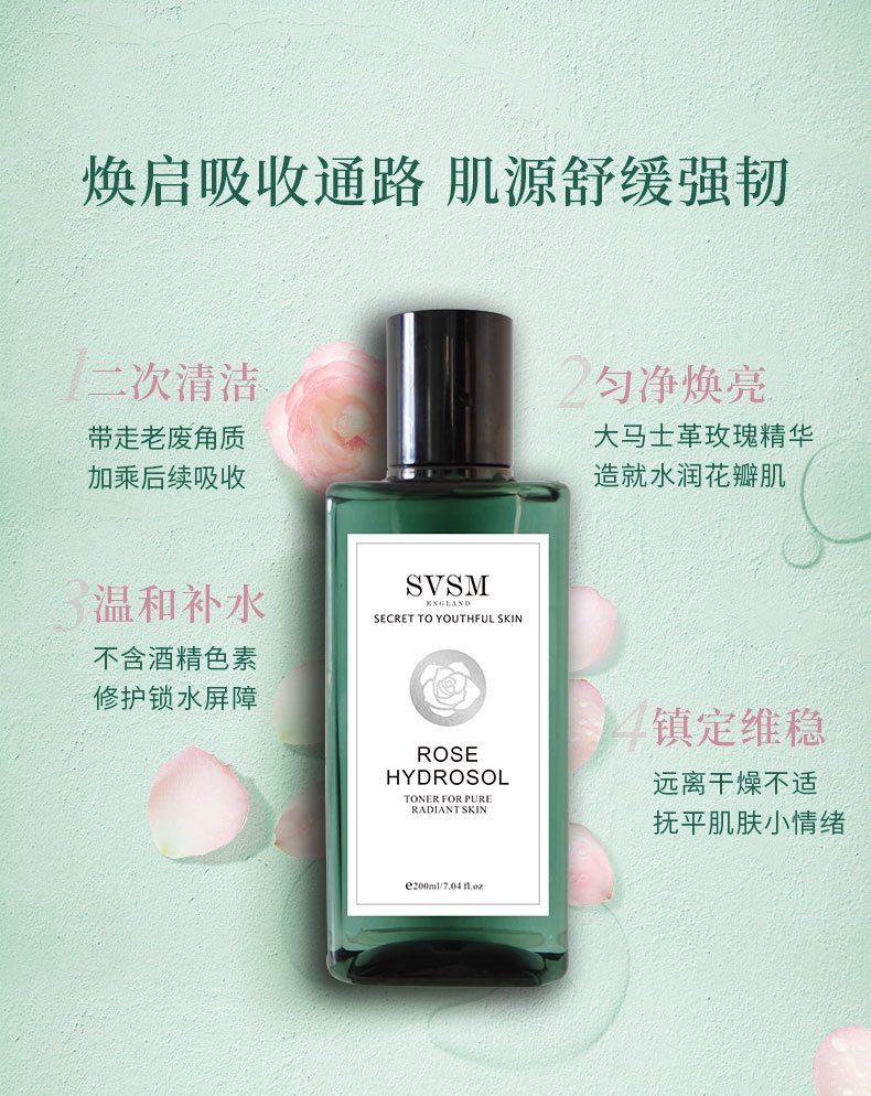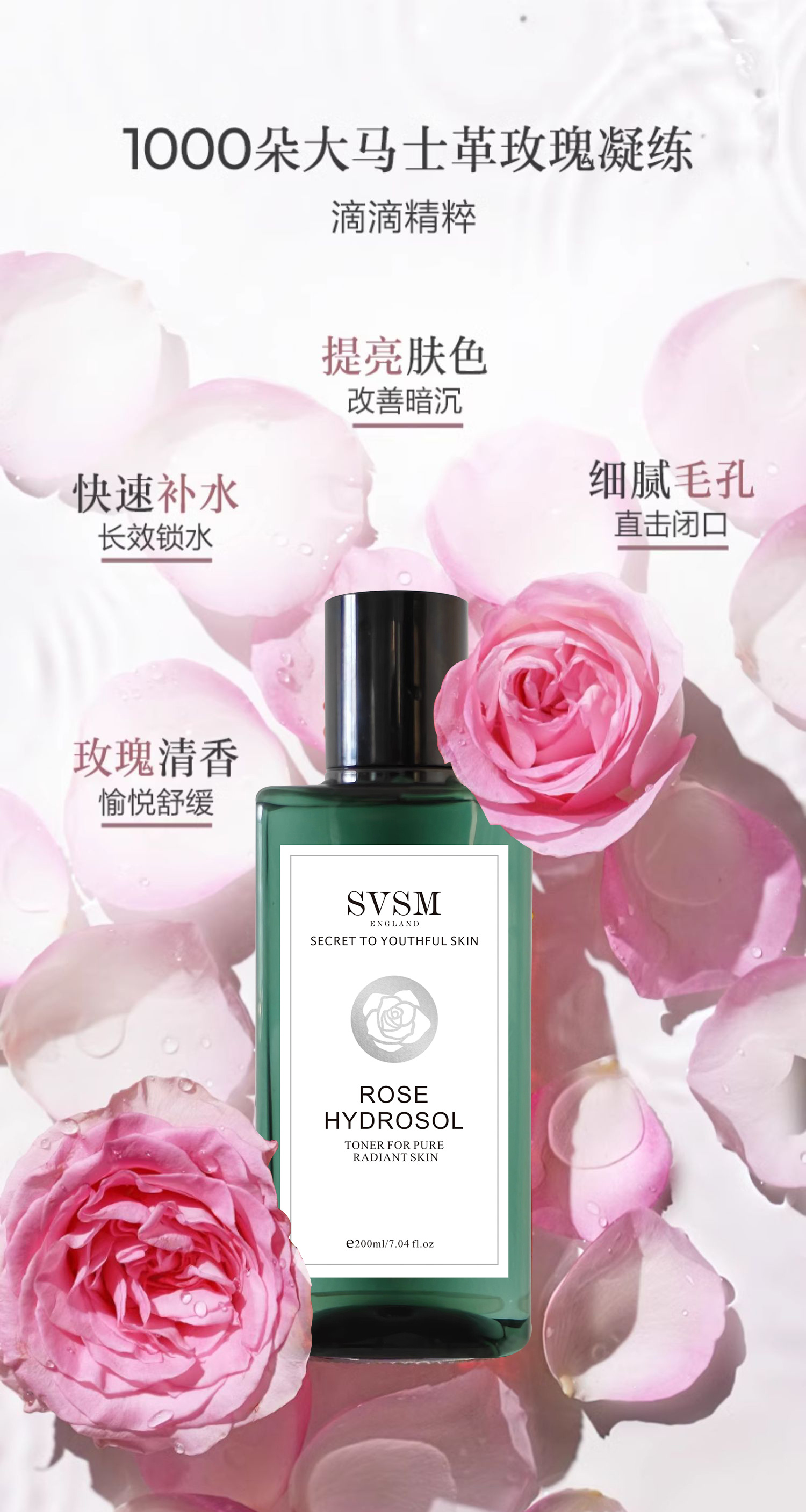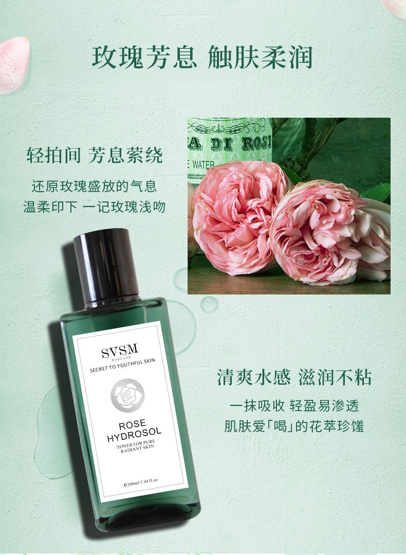 英国原装进口【SVSM玫瑰纯露】天然抗氧 补水嫩肤 提亮肤色 高浓度饱和精粹蒸馏 安全无刺激 200ml*4 ZXT
