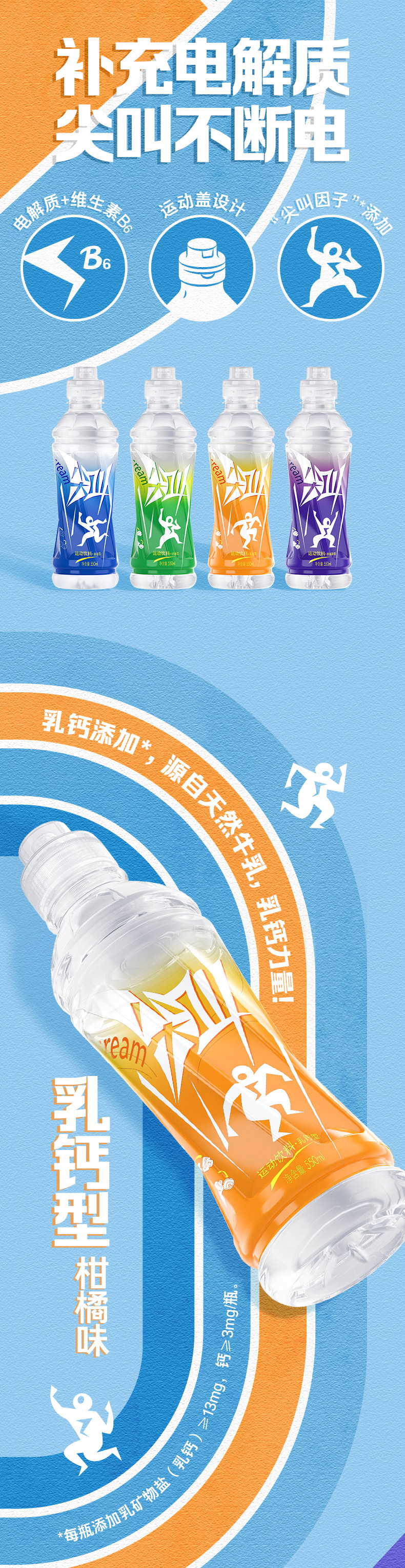 农夫山泉尖叫多肽型运动补水饮料 补充电解质 550ml/瓶