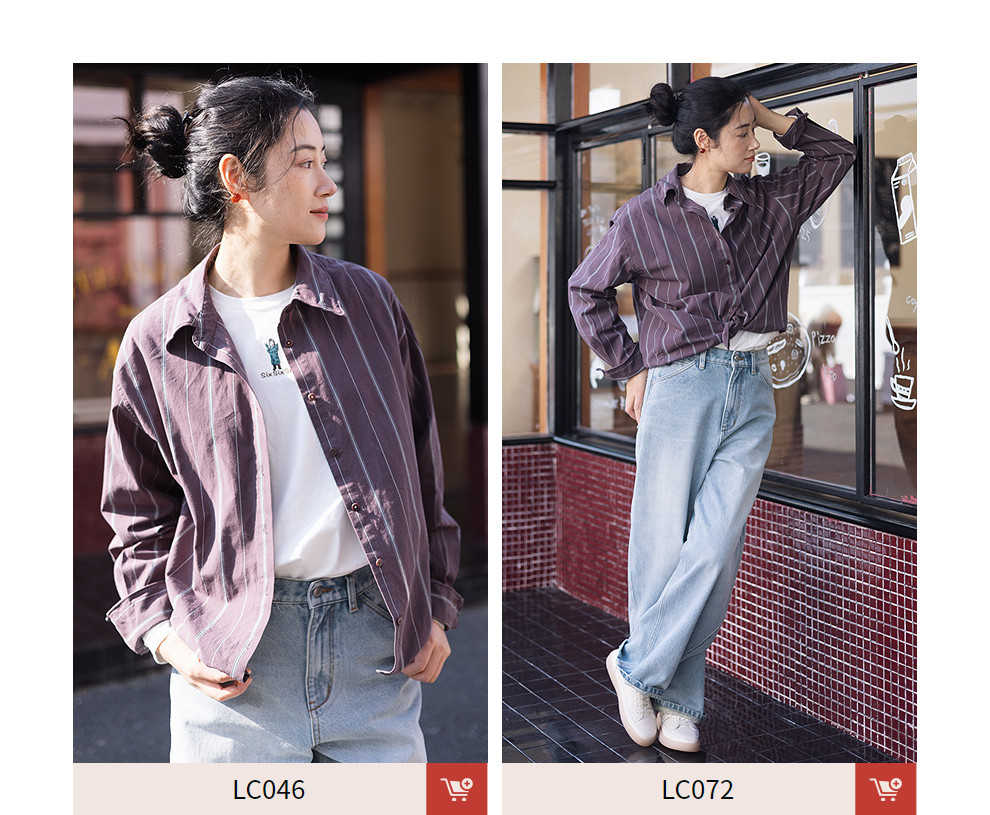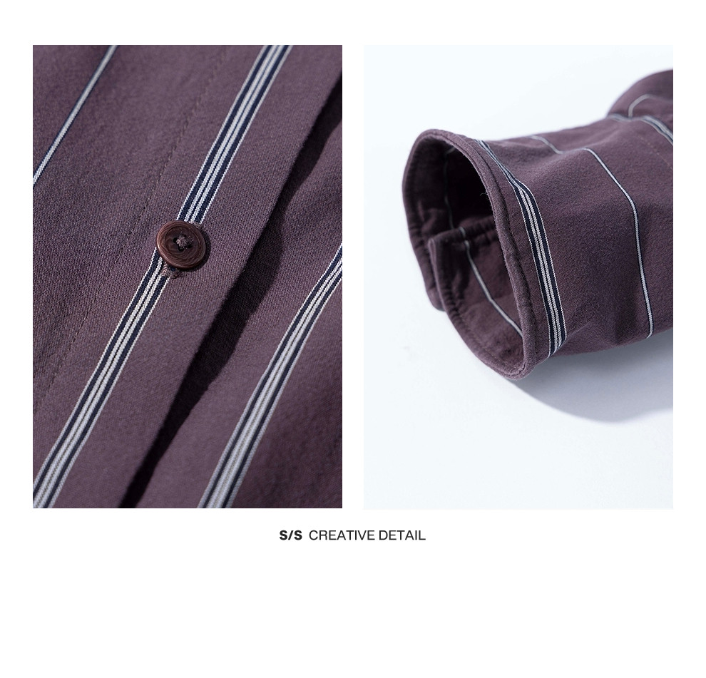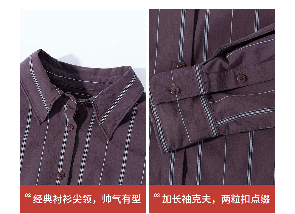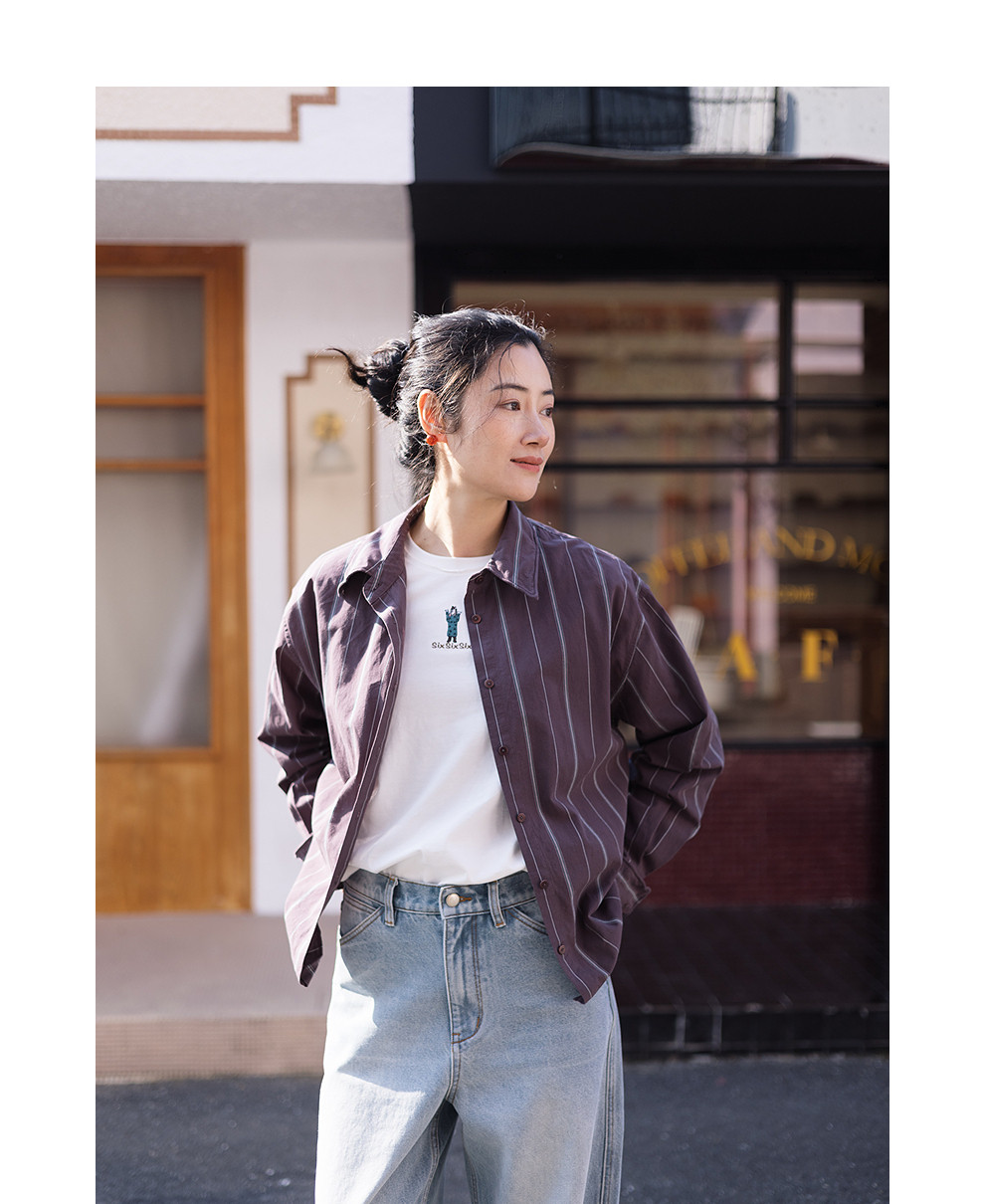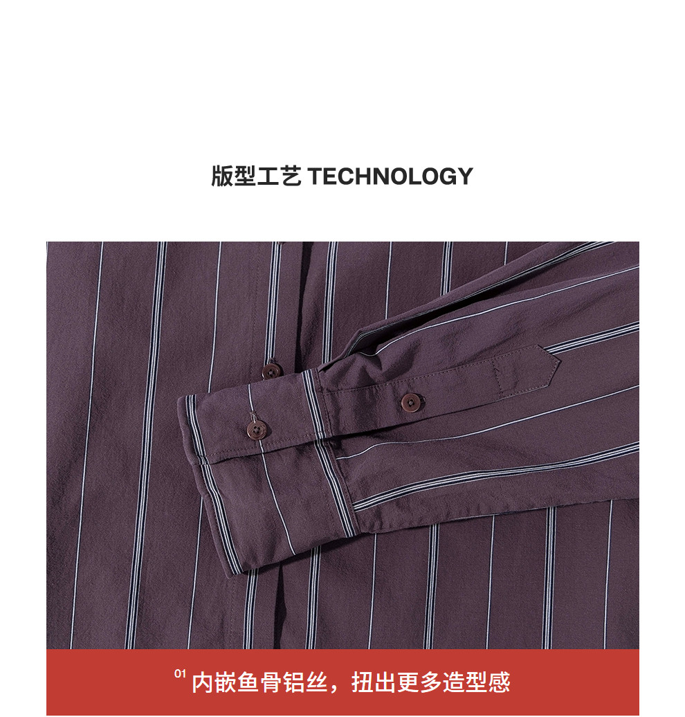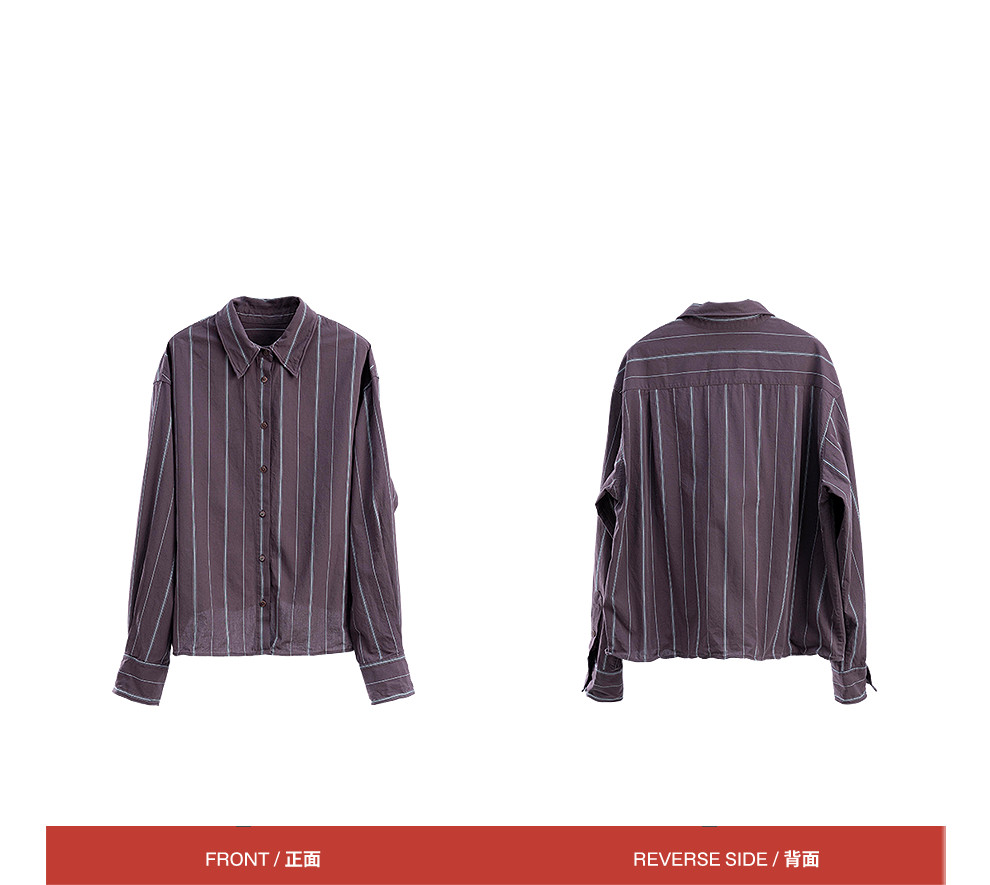绽放053朵/沙感长绒棉盐缩条纹鱼骨设计长袖衬衫女春新款百搭上衣