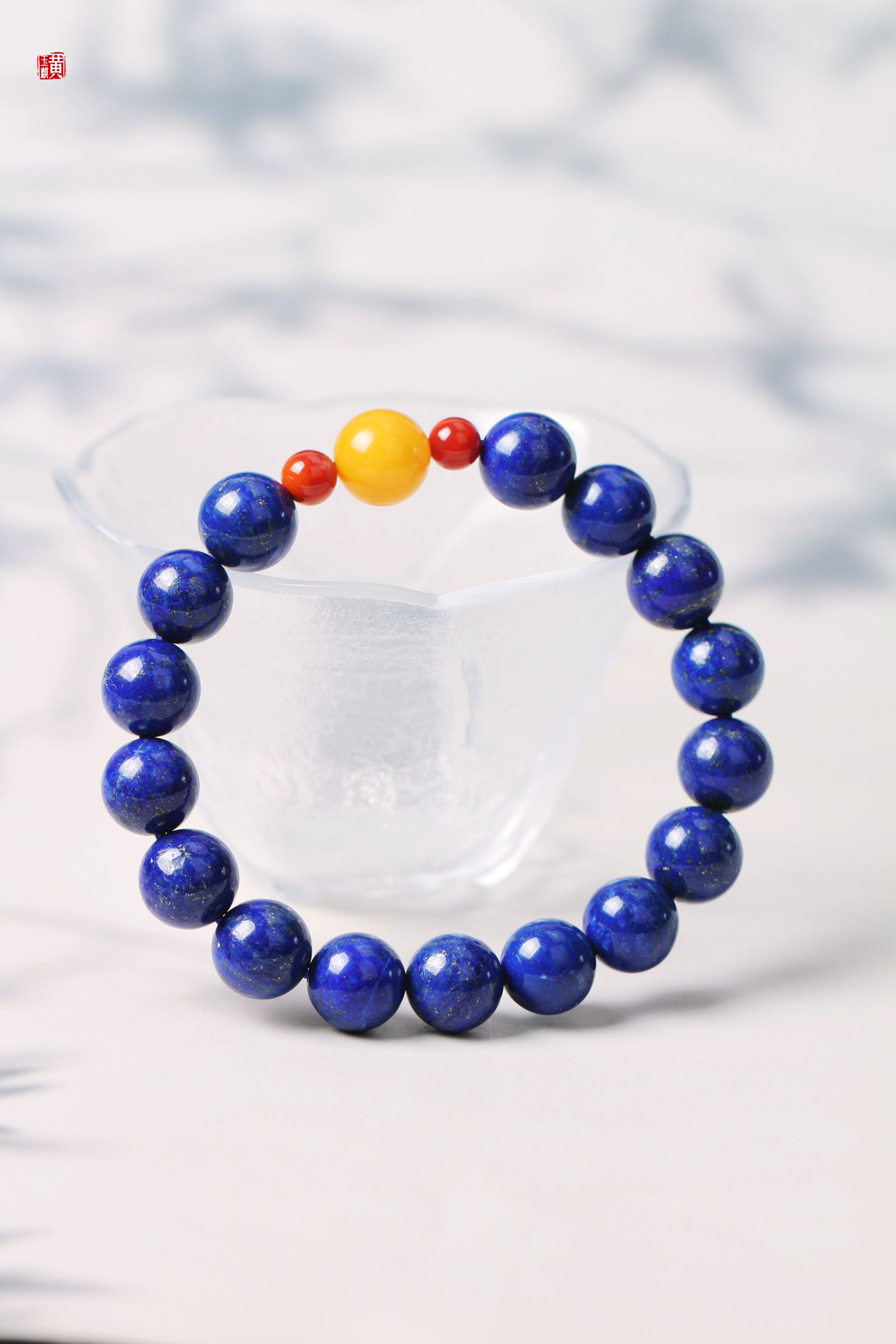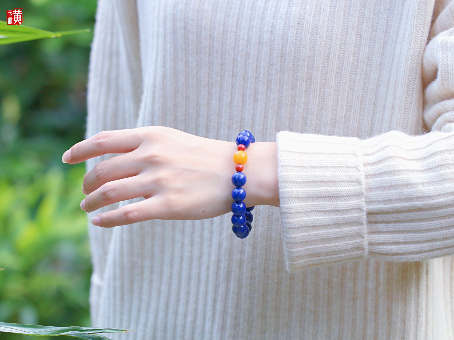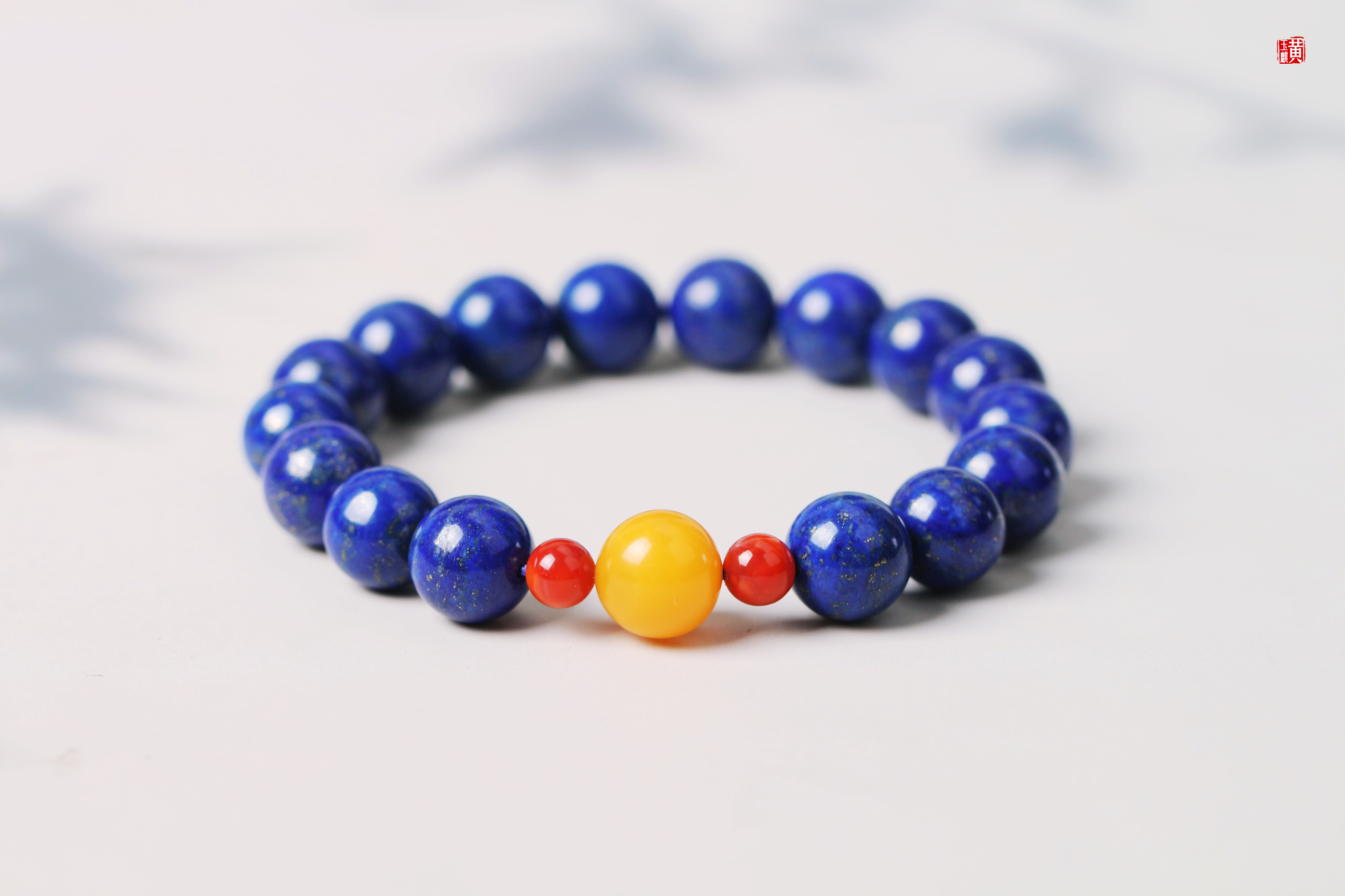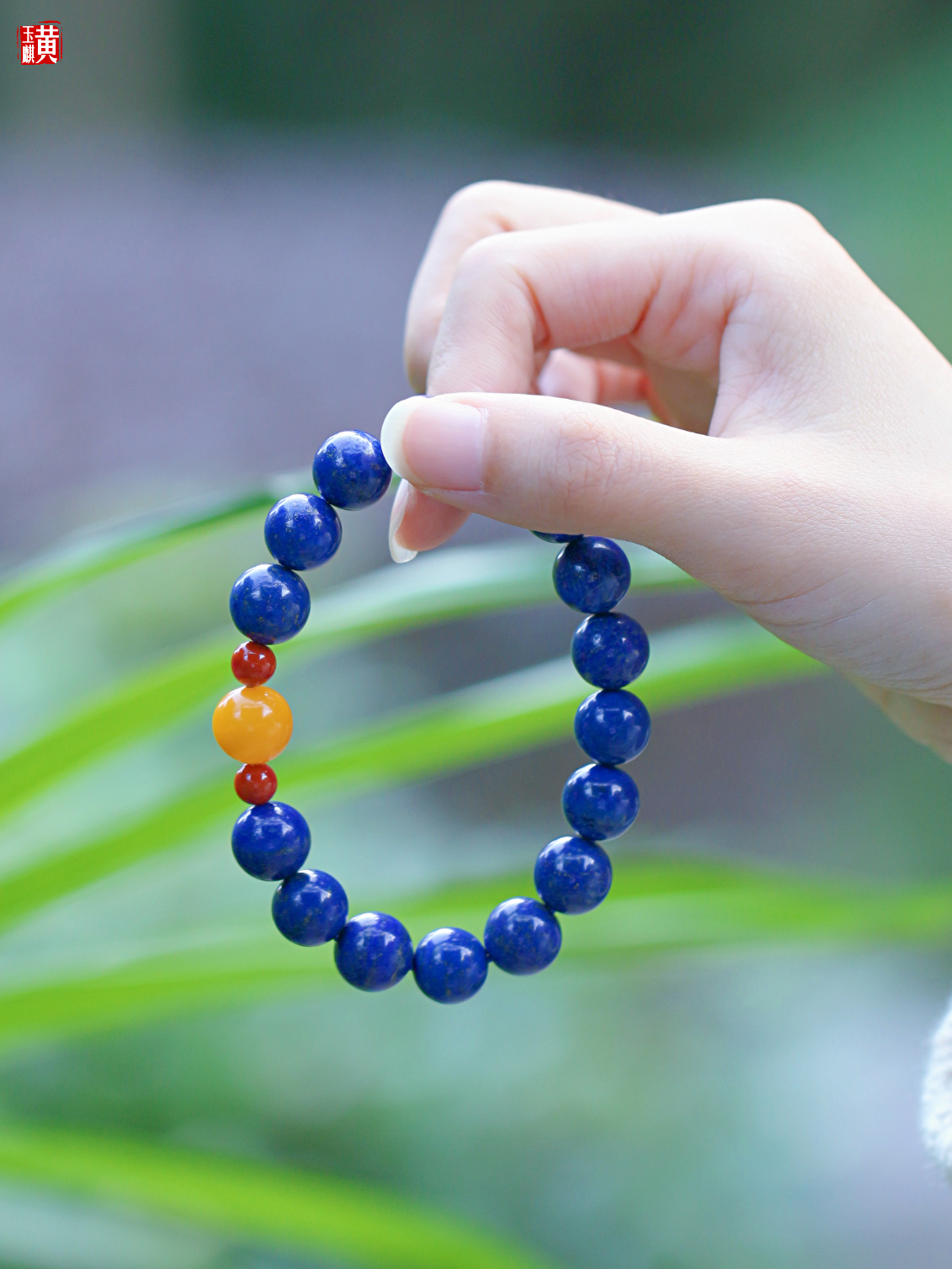 青金石手串 搭配蜜蜡、南红