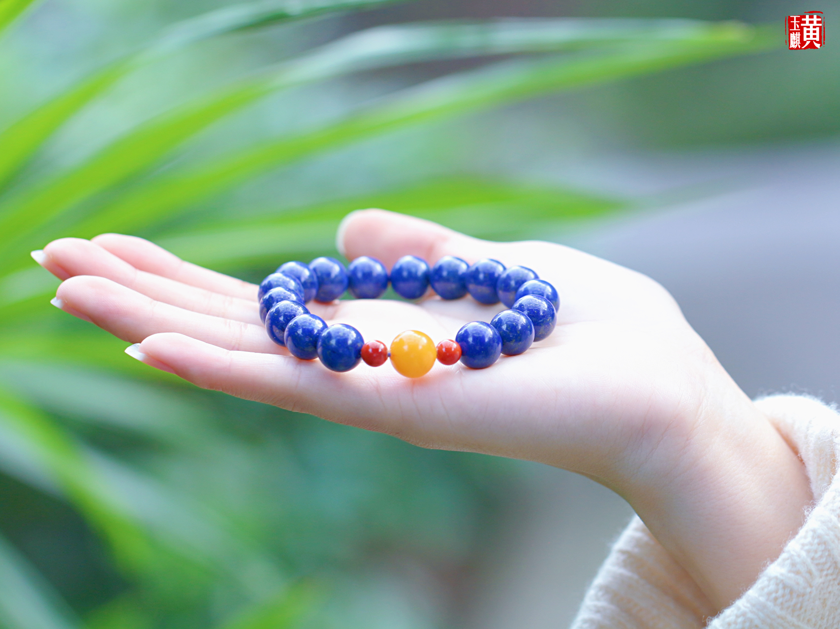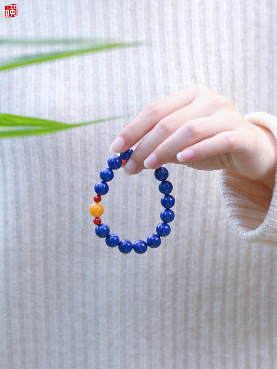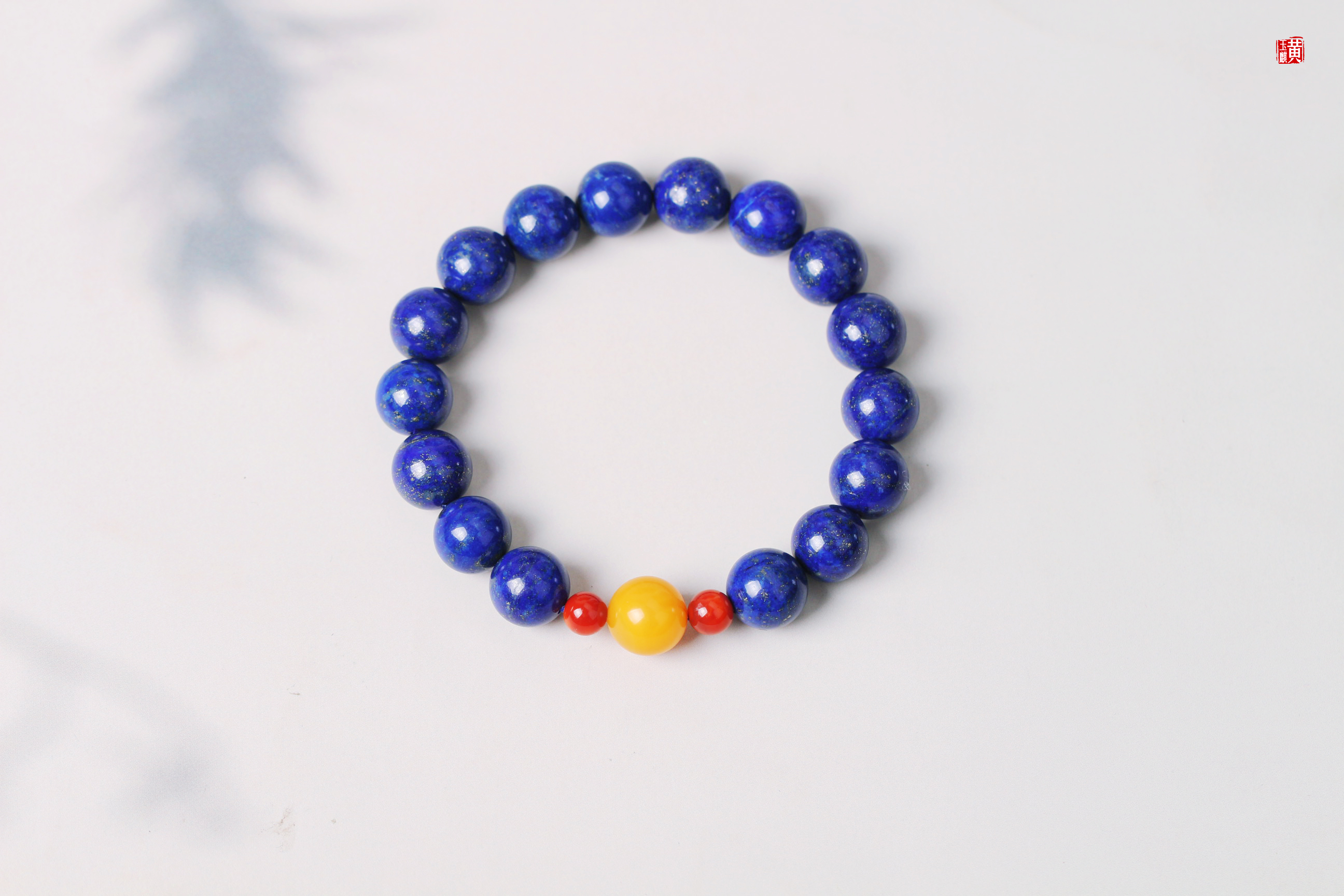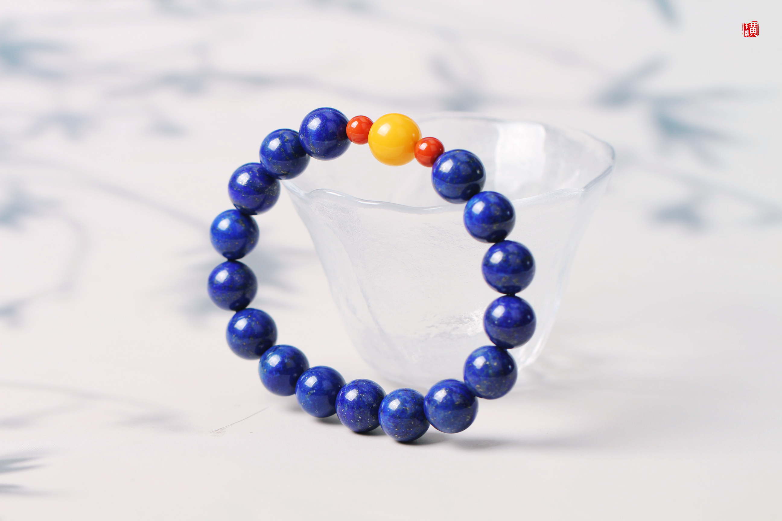 青金石手串 搭配蜜蜡、南红