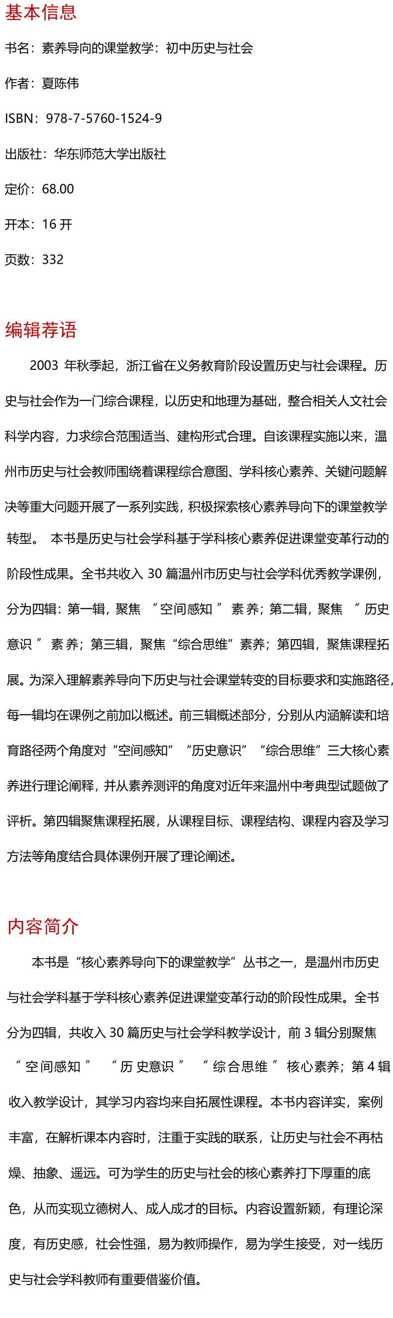 素养导向的课堂教学 初中历史与社会 核心素养导向下的课堂教学 中学历史课教学研究 社会科学课教学研究