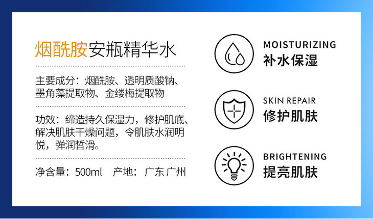 【买一送一】玻尿酸安瓶精华水收缩毛孔烟酰胺保湿补水爽肤水(500g/瓶)