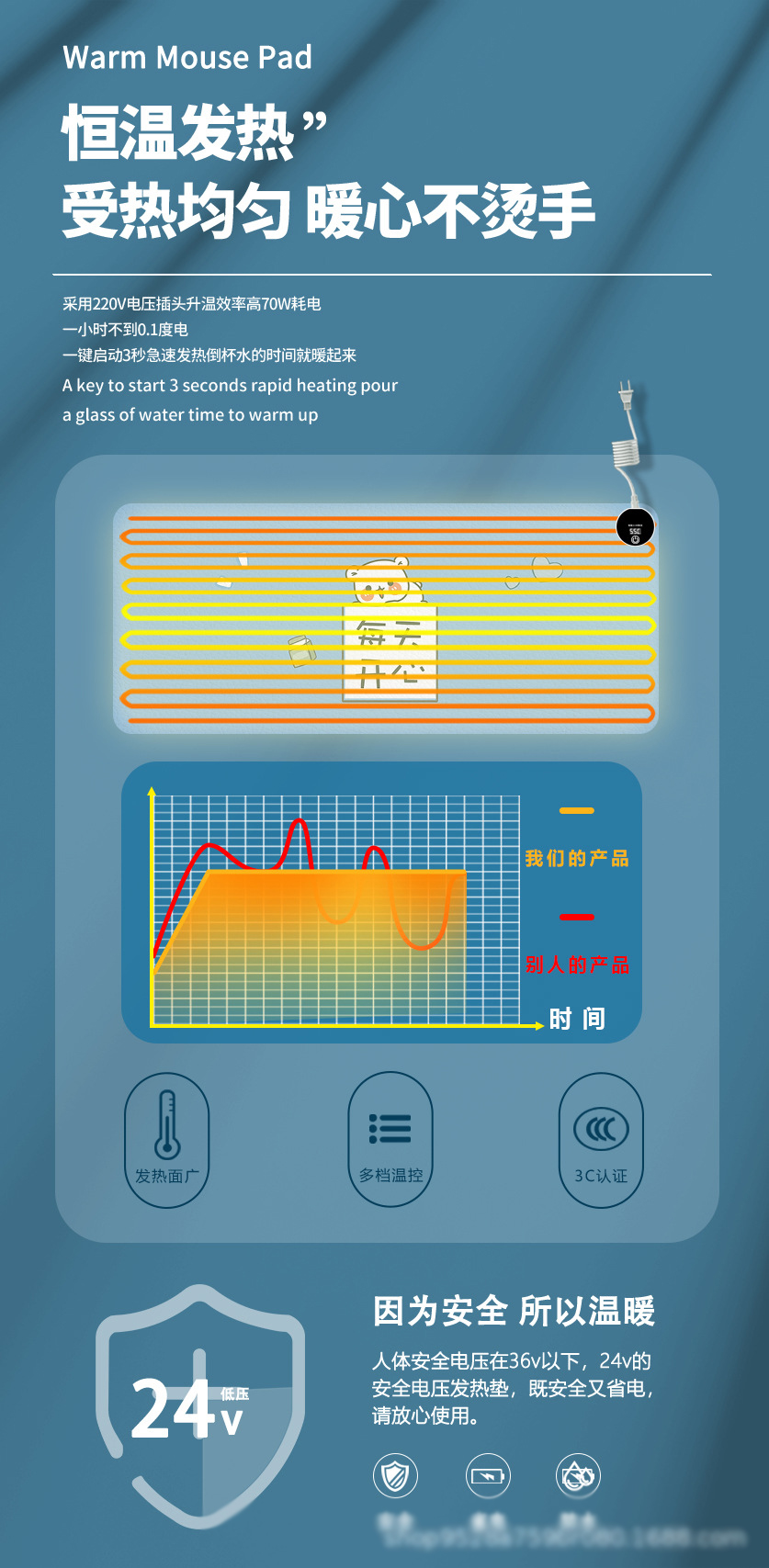 加热鼠标垫大号卡通发热暖桌垫办公室电脑桌面发热垫写作业暖手垫_ZSY