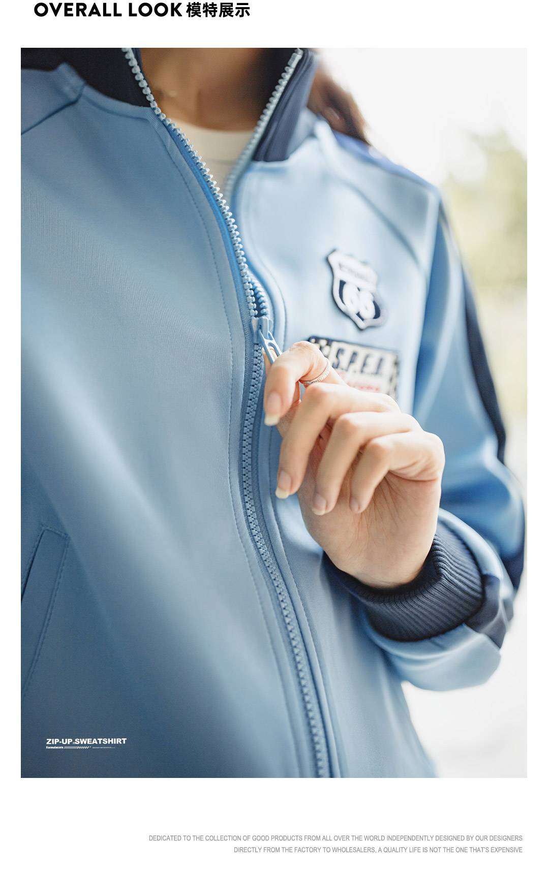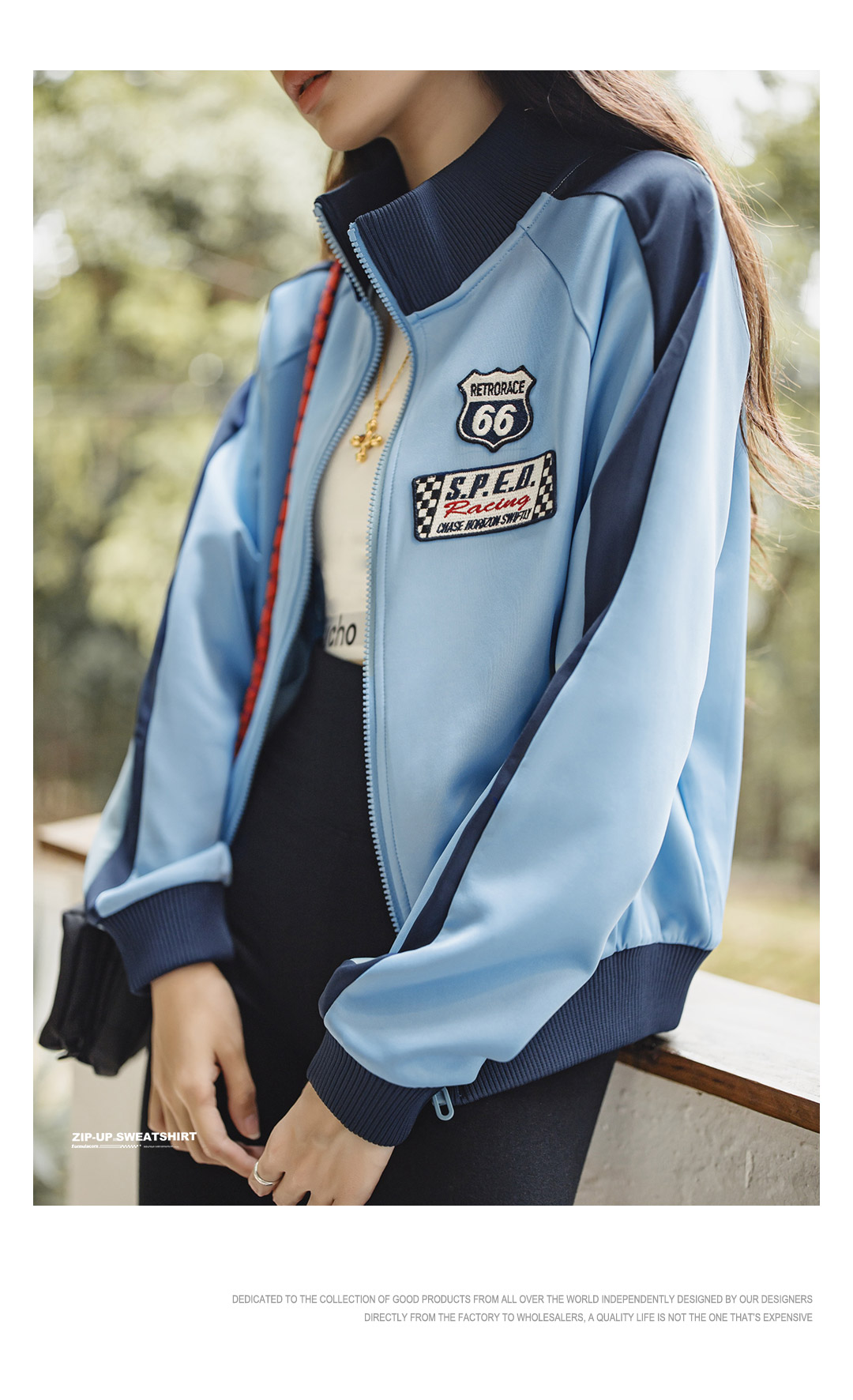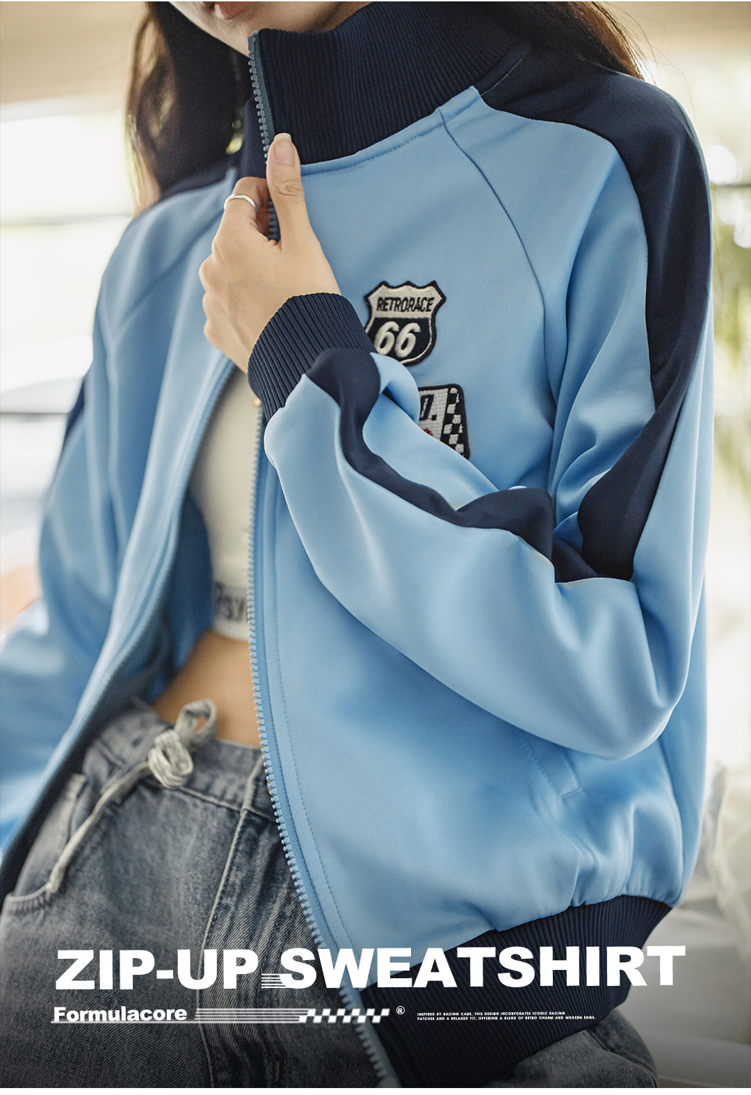 马登撞色拼接拉链卫衣复古徽章开衫上衣宽松休闲运动外套潮春秋女