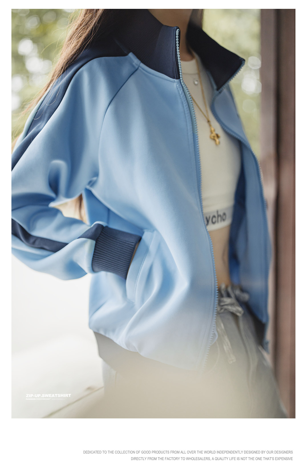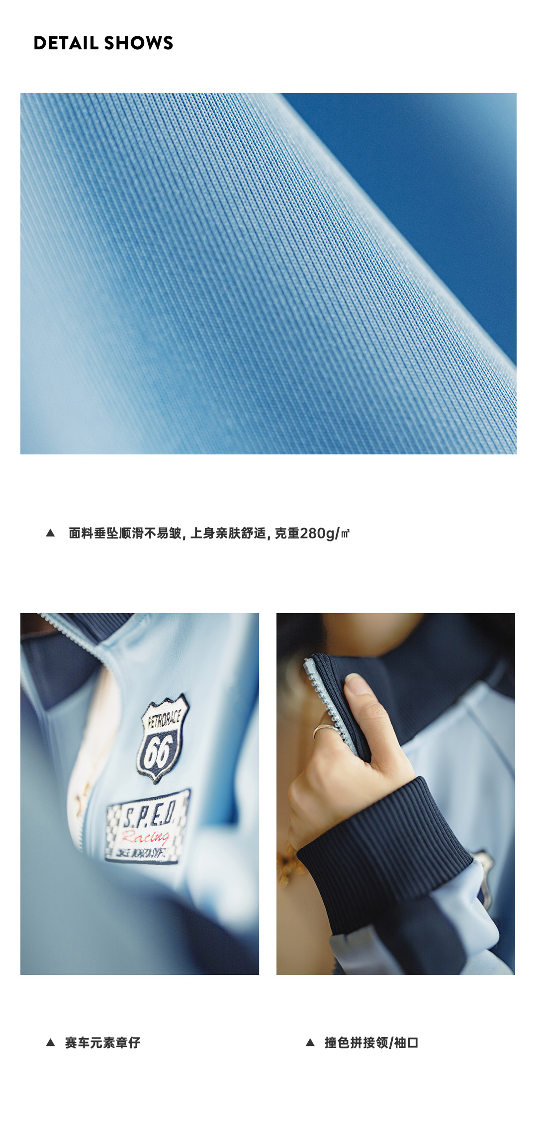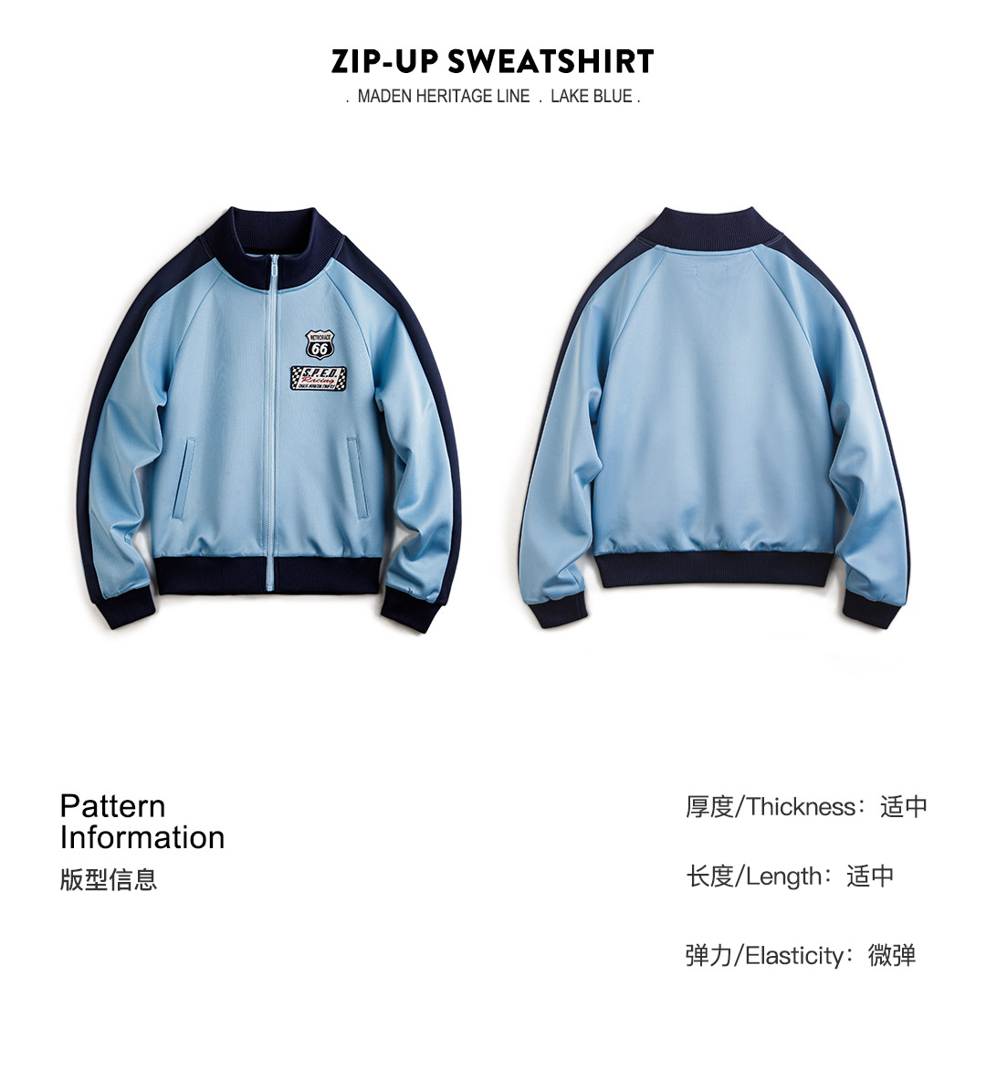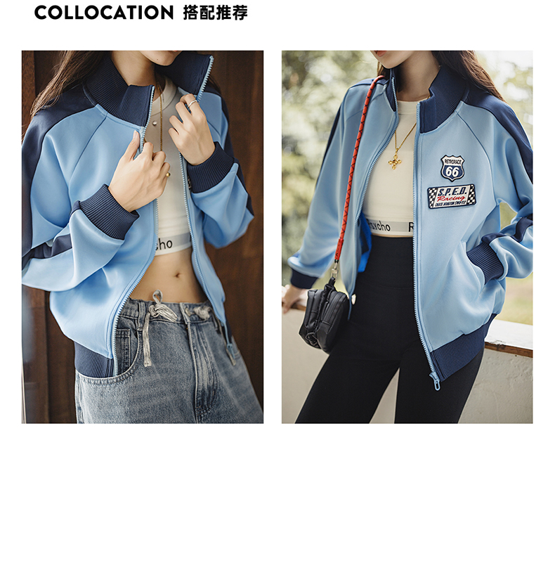 马登撞色拼接拉链卫衣复古徽章开衫上衣宽松休闲运动外套潮春秋女