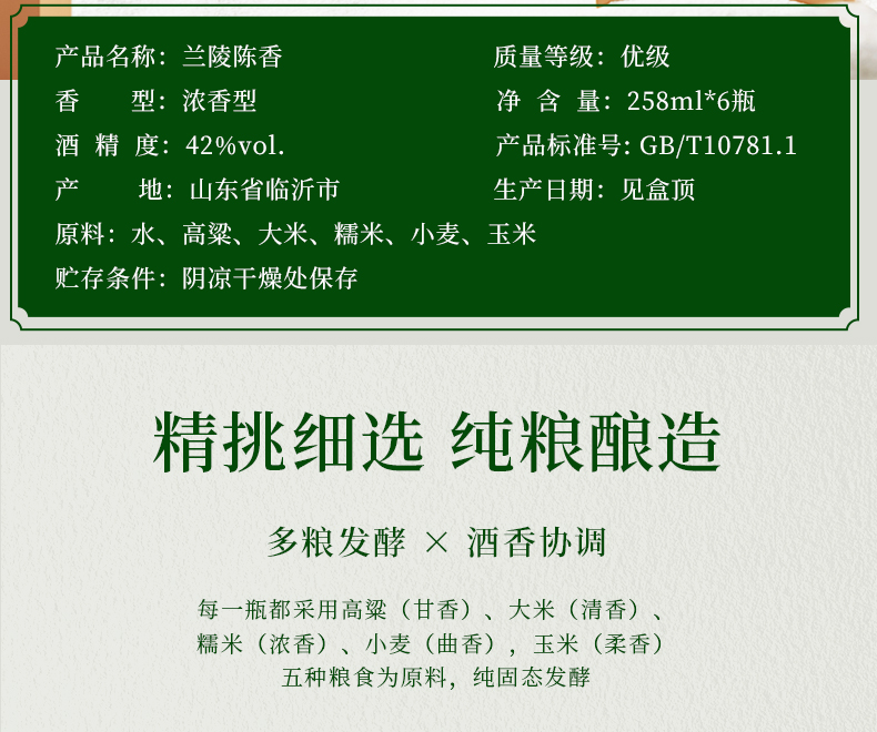 兰陵美酒 兰陵复古陈香 42度浓香型 258mL*6礼盒装【限时送1瓶】