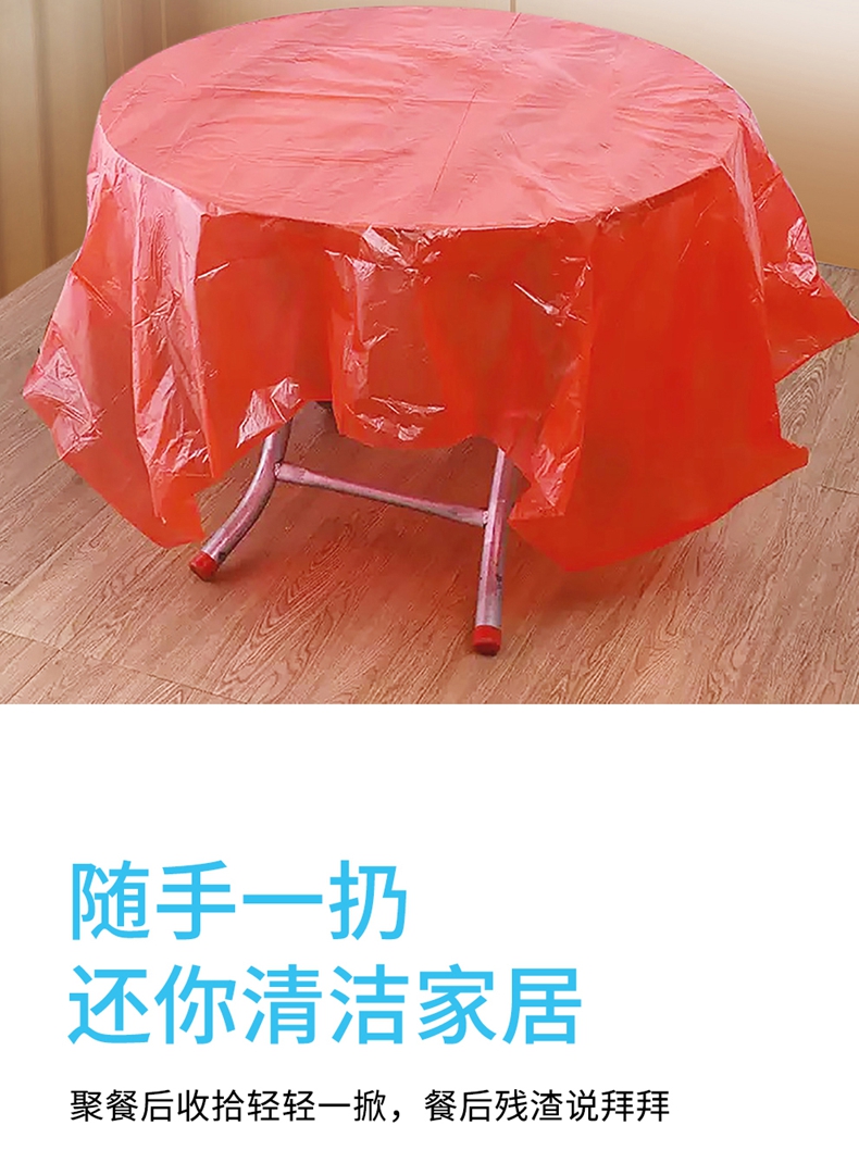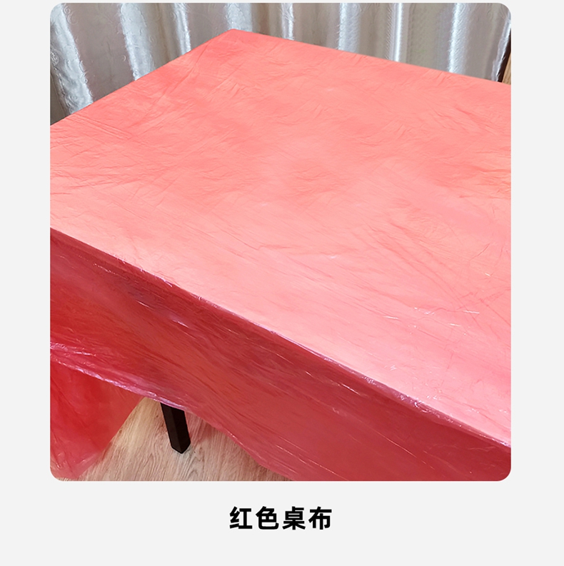 喇叭花红色一次性桌布台布餐桌布带双喜字塑料PE180*180CM 10张