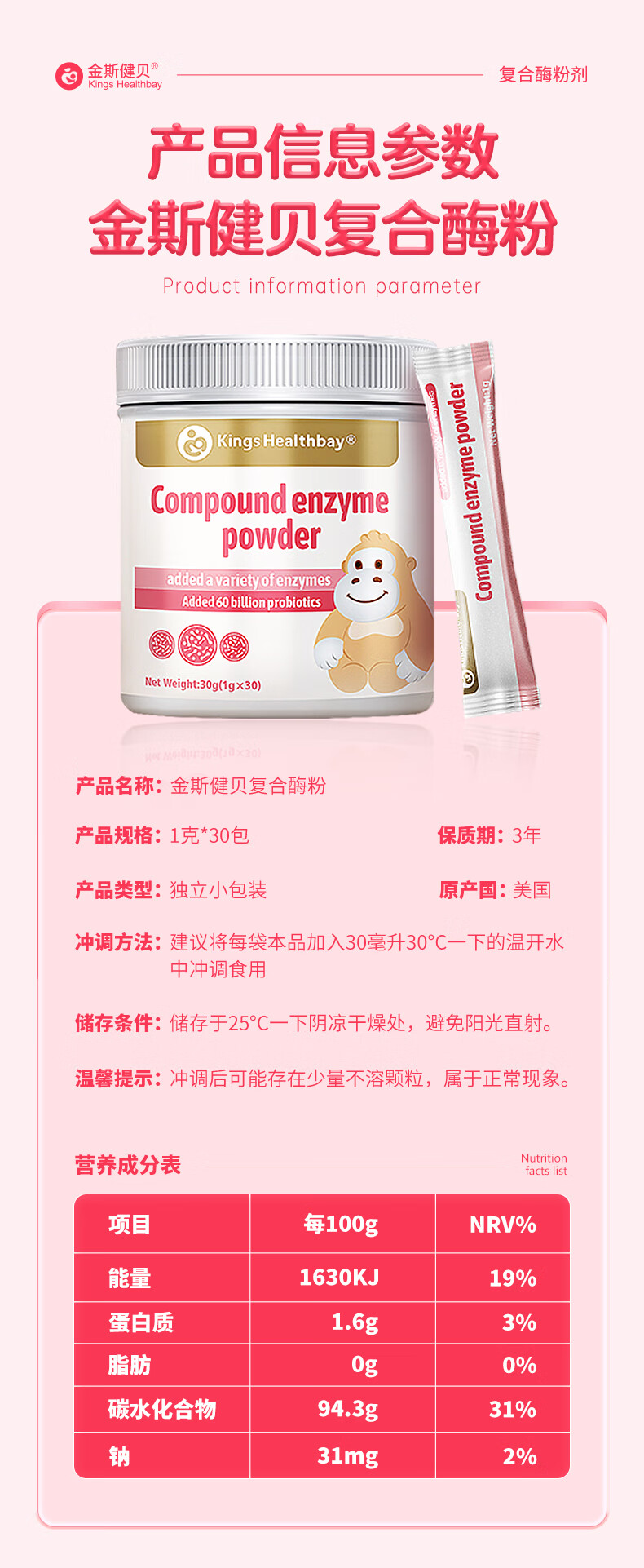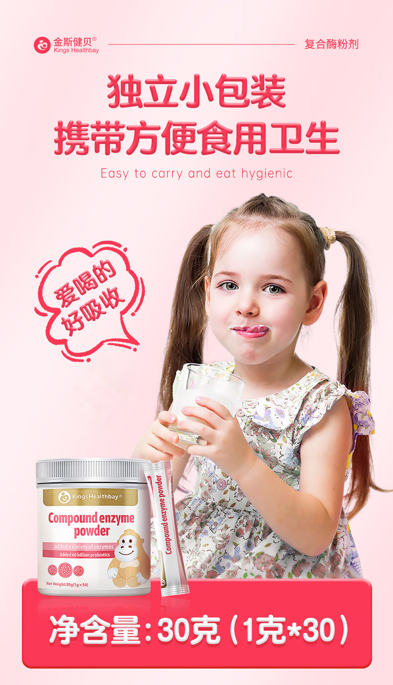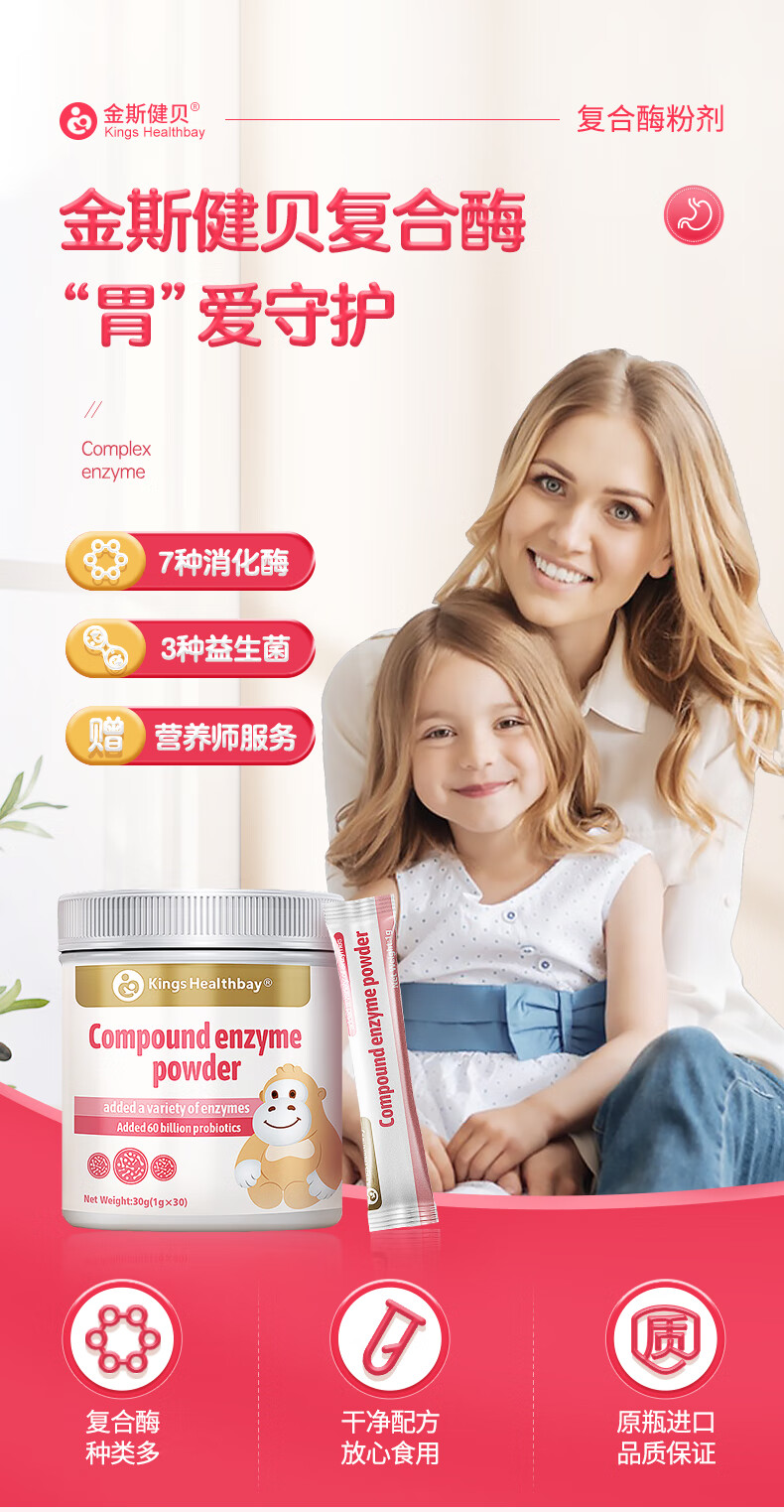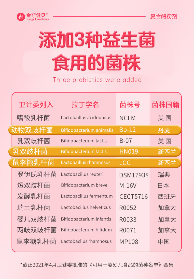 【源码】美国进口金斯健贝复合酶粉消化酶粉鼠李糖活性益生菌30袋/罐