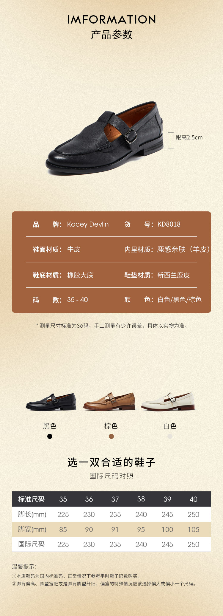 KACEY DEVLIN德芙琳法式复古玛丽珍低跟乐福单鞋女KD8018【72小时内发货,棕色预售7天发货】