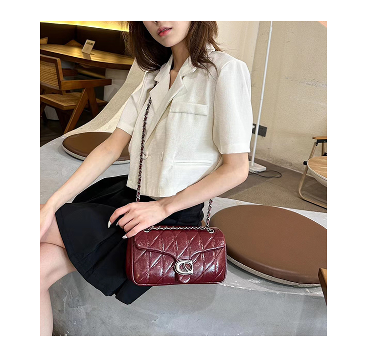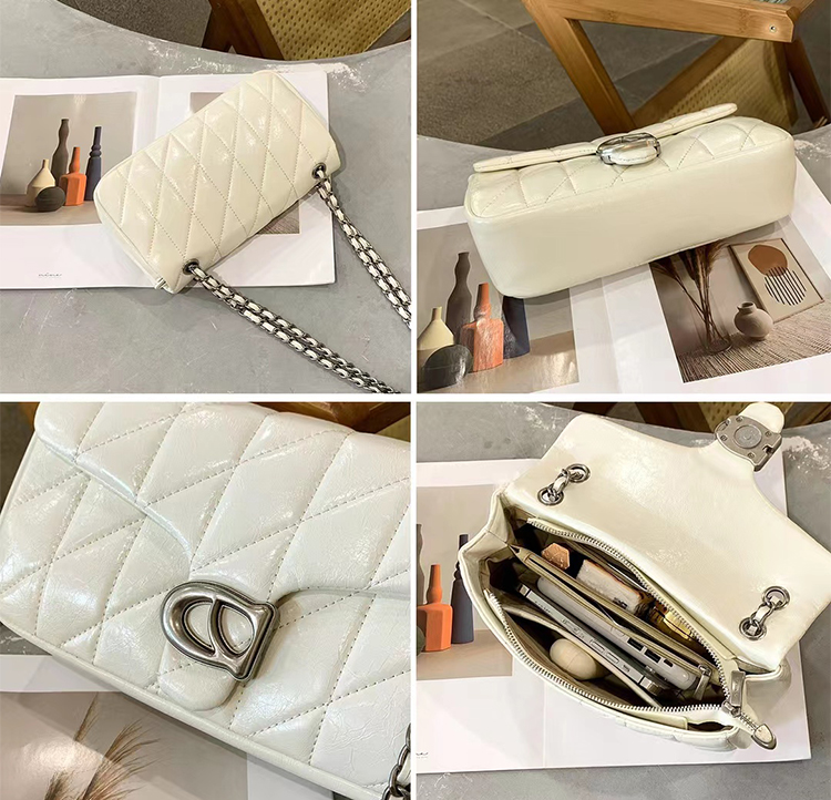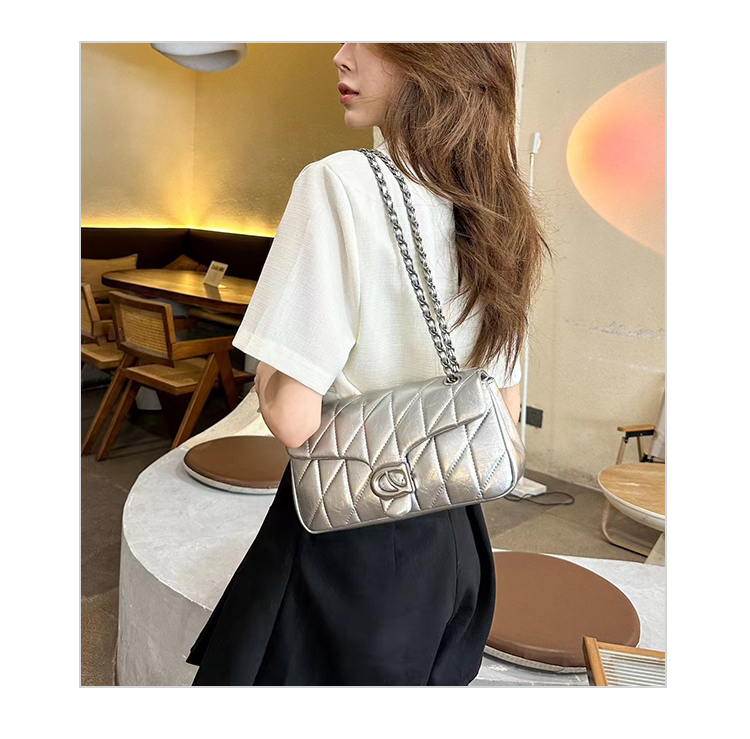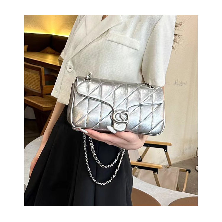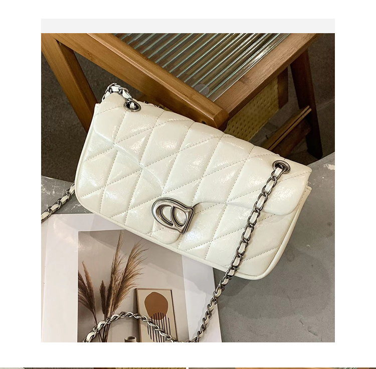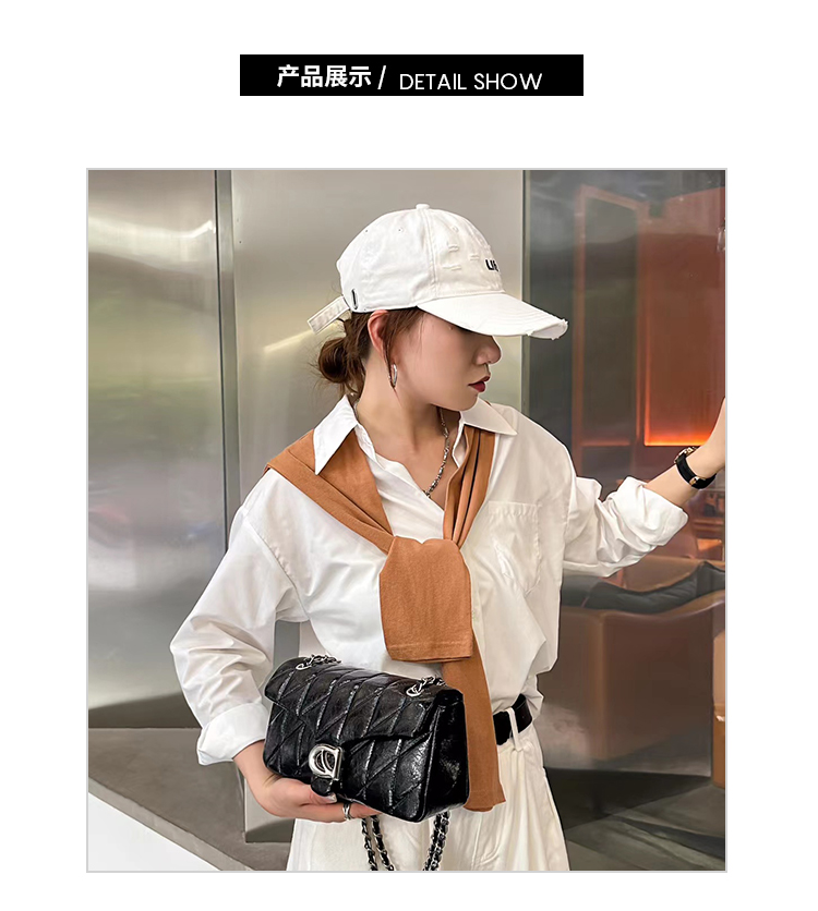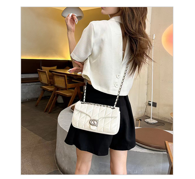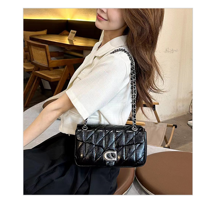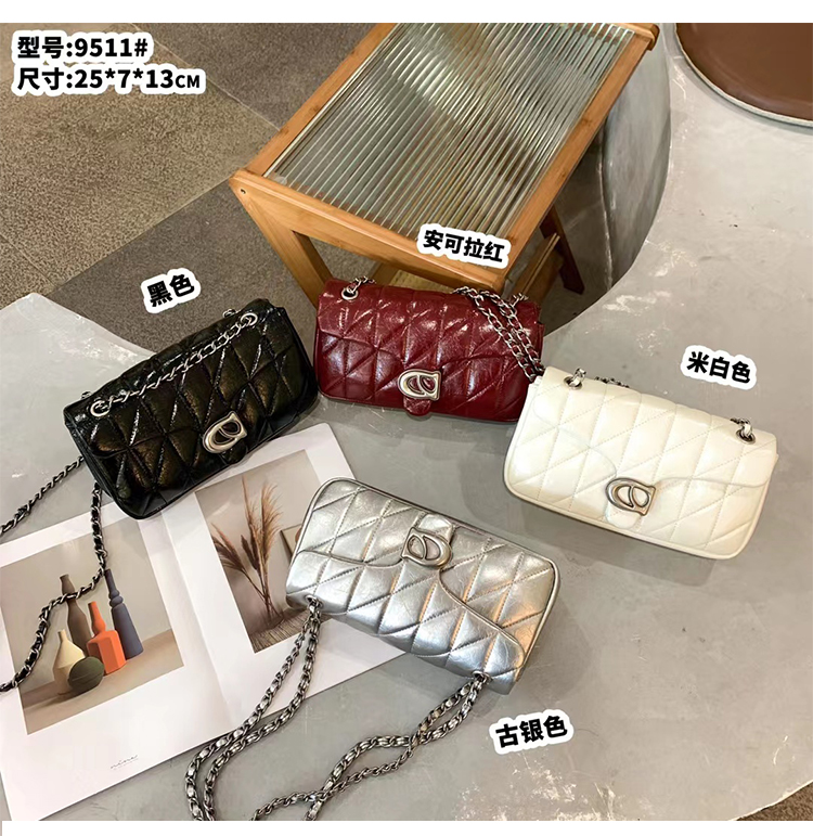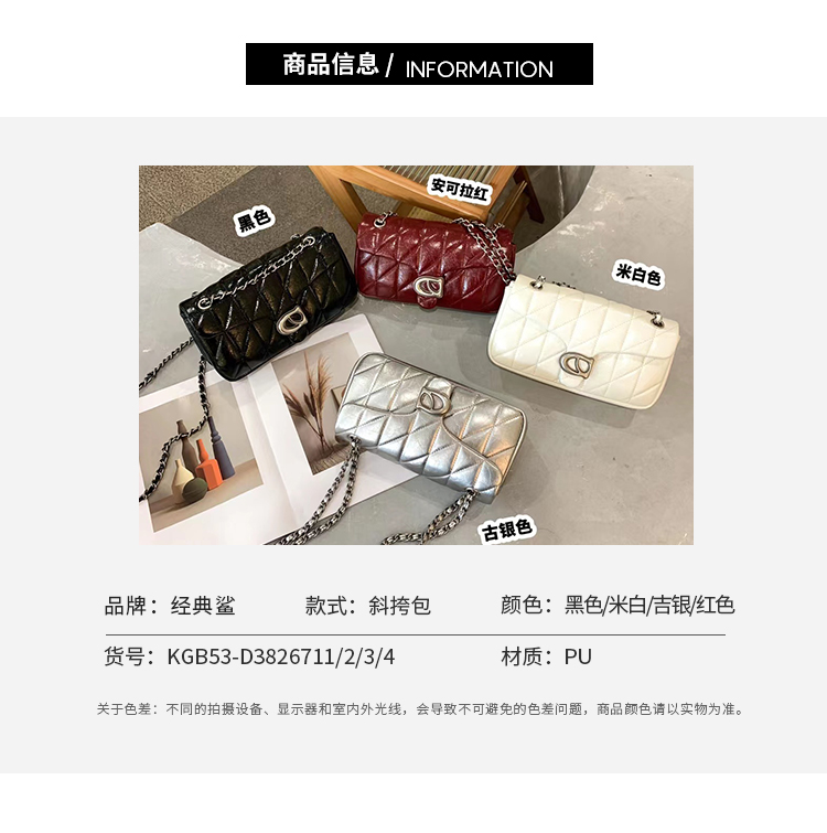 经典鲨2024年秋季新款时尚菱格纯色百搭单肩斜挎链条包KGB53-D395111