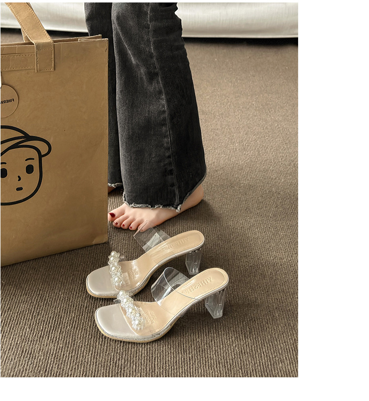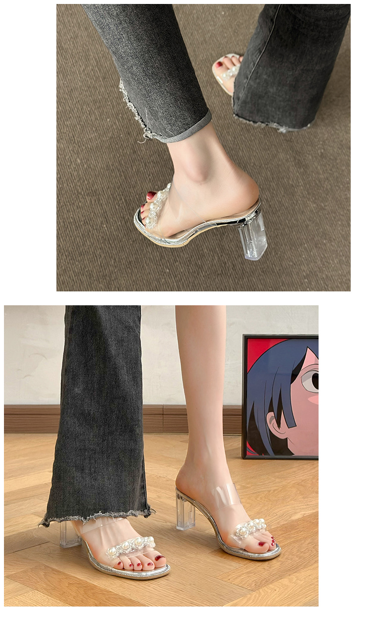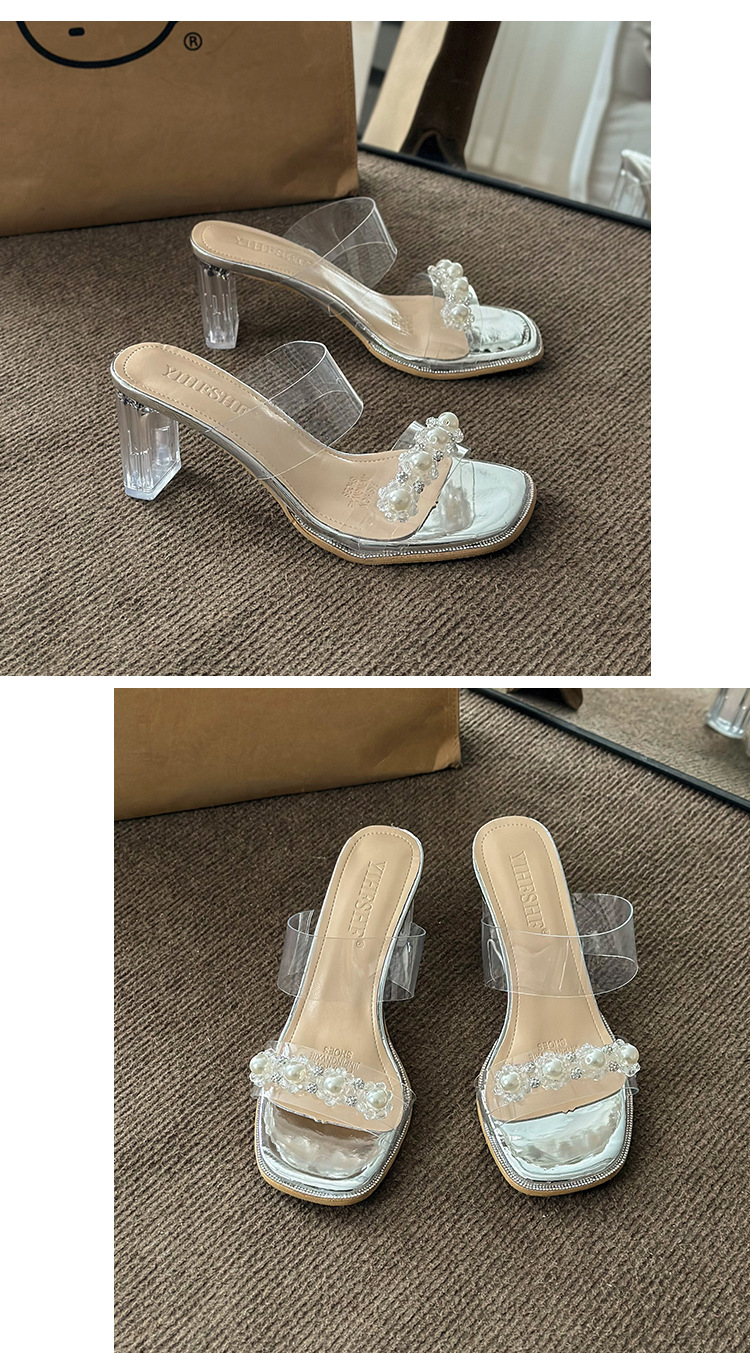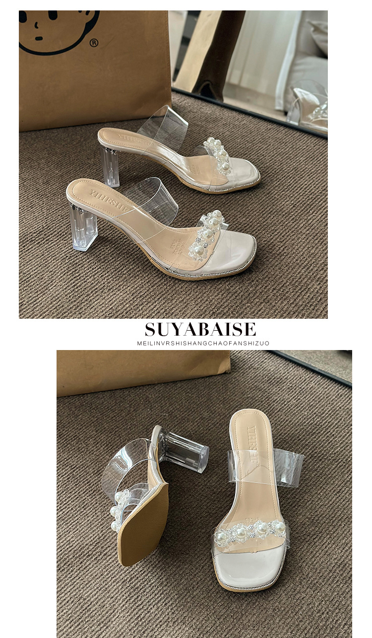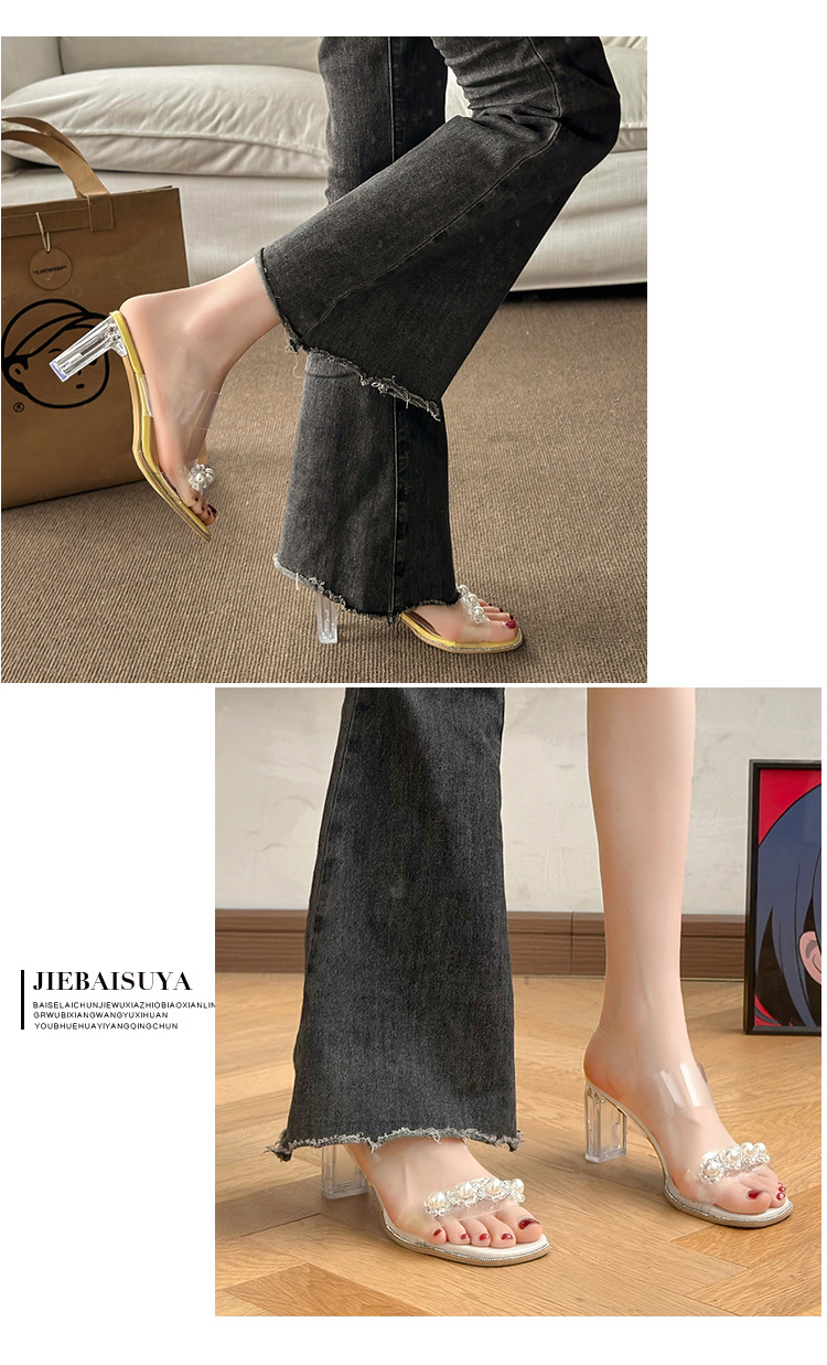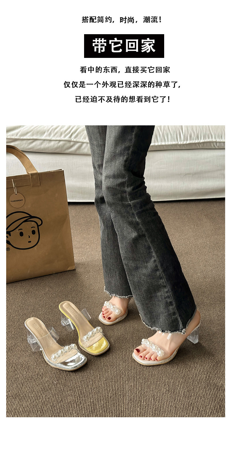 【超美百搭❗️新款透明水钻凉拖鞋】显高显瘦显气质,新款高跟鞋女夏季中跟时装百搭凉鞋粗跟外穿鞋子