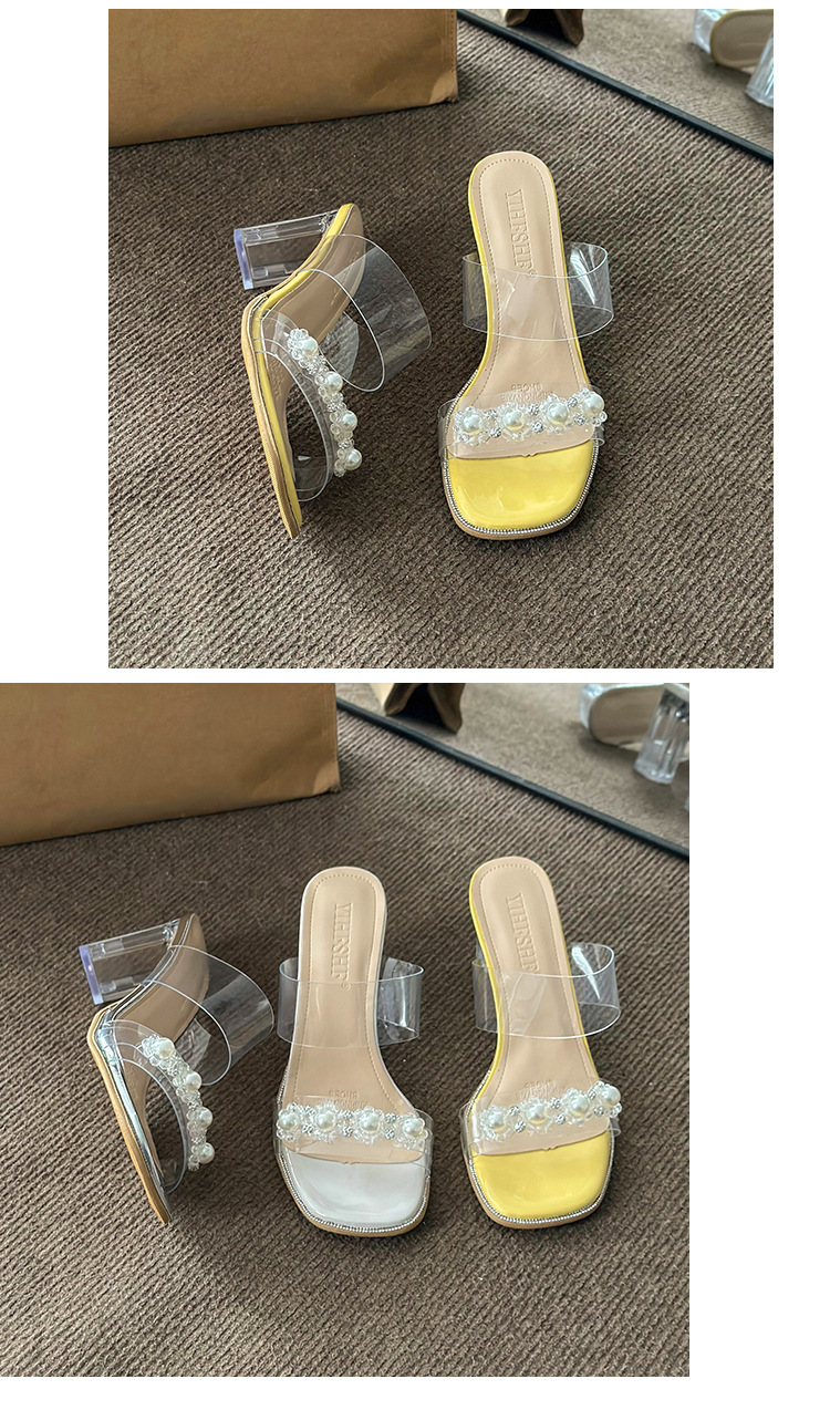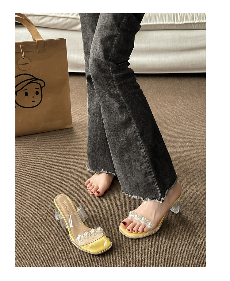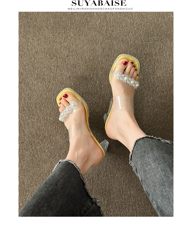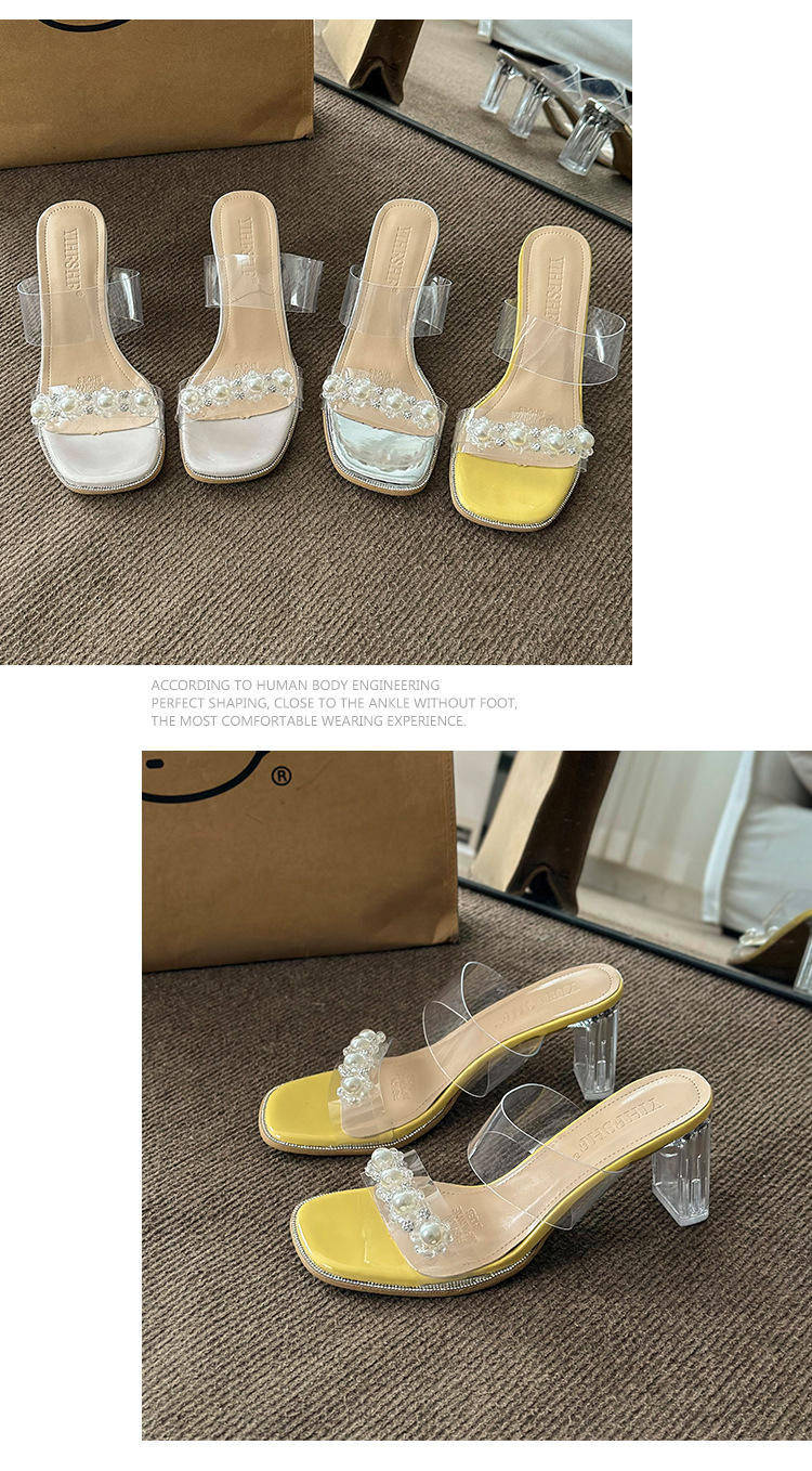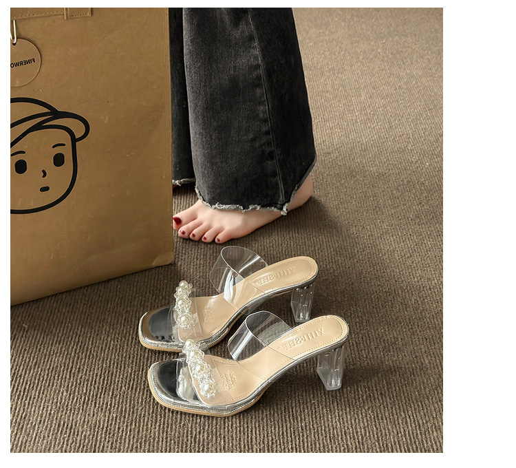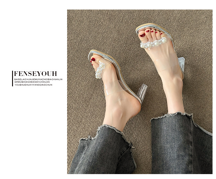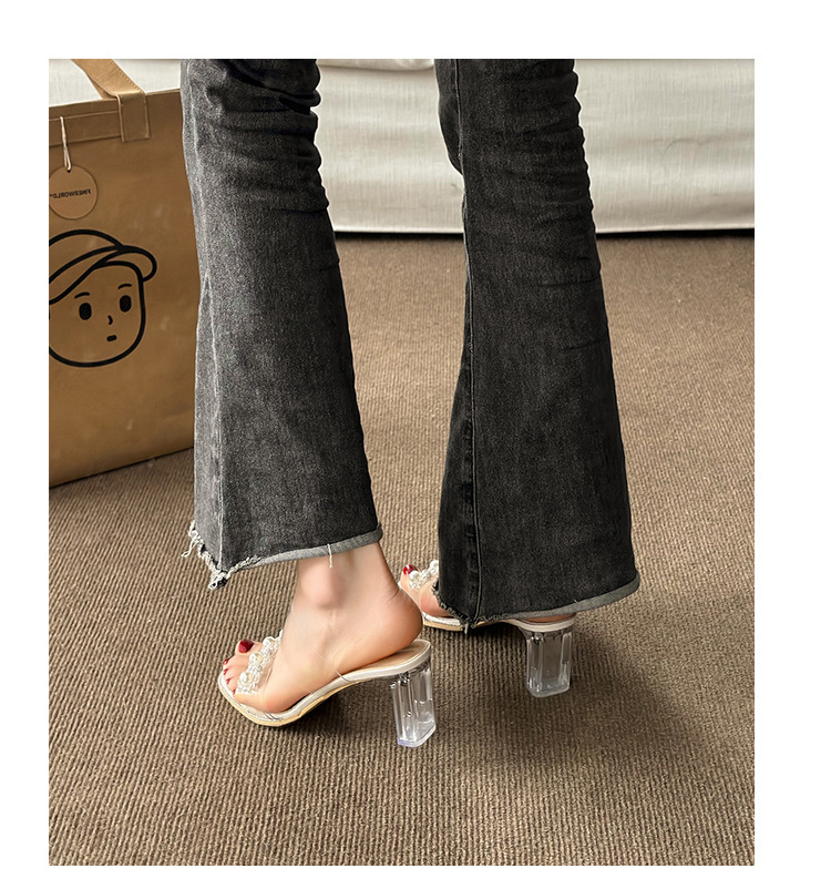 【超美百搭❗️新款透明水钻凉拖鞋】显高显瘦显气质,新款高跟鞋女夏季中跟时装百搭凉鞋粗跟外穿鞋子