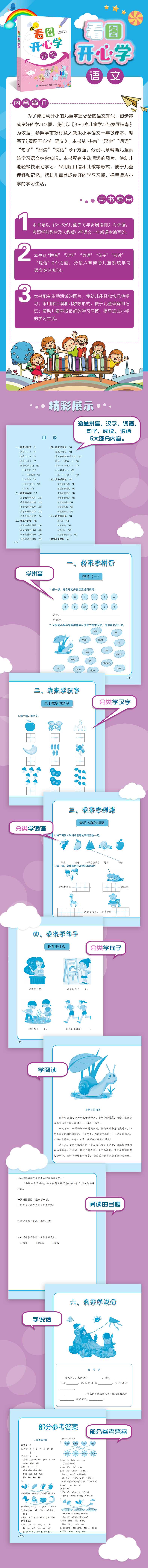 2.本书从“拼音”“汉字”“词语”“句子”“阅读”“说话”6个方面,分设六章帮助儿童系统学习语文综合知识。