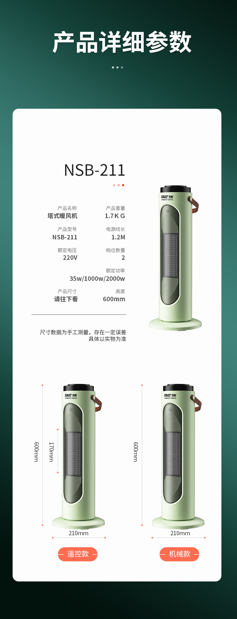 先科新款立式暖风机