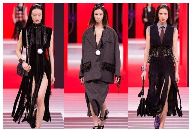 在每年的时装周表演中,我们会看到很多复古元素,很多时尚品牌都喜欢把流苏集中在下半身,纤细的流苏很高级很显瘦。