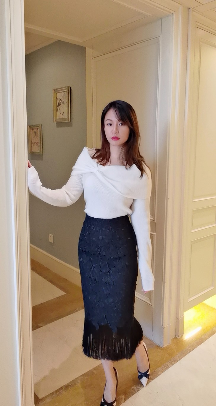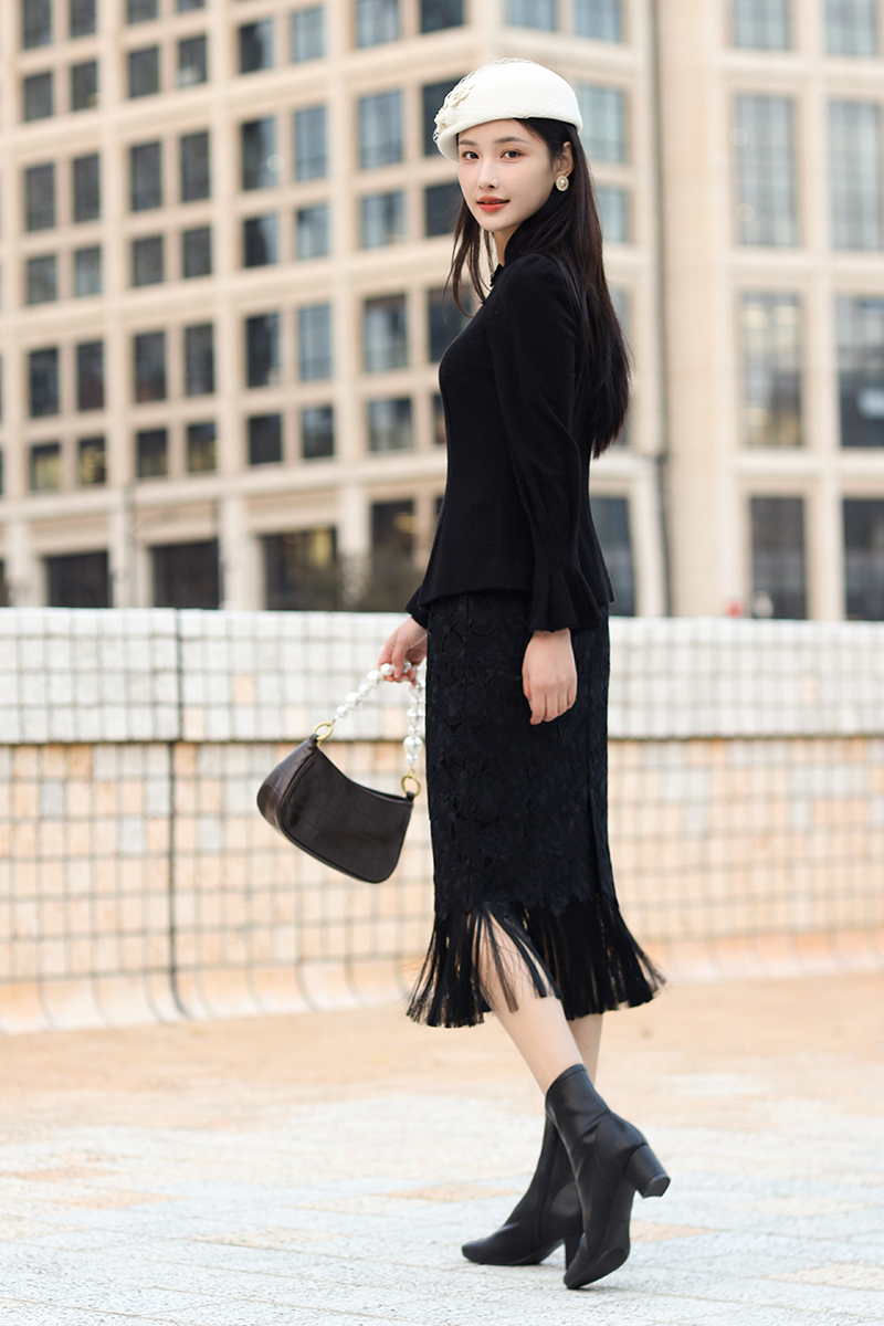 长半裙、高腰、立体剪裁,选这样的裙子一定不会出错,对身材包容度很高,配上这件【彩蝶】毛衣,完全是不用费心思又能穿好的成套搭配。